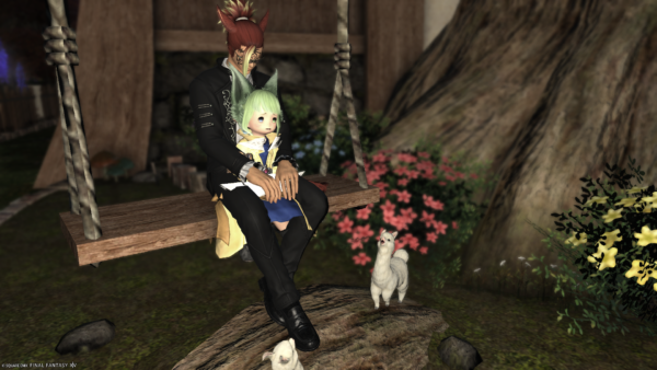 わーいブランコ!ってウキウキでのっていたら、変なミコッテさんも乗ってきたのでこの表情…。