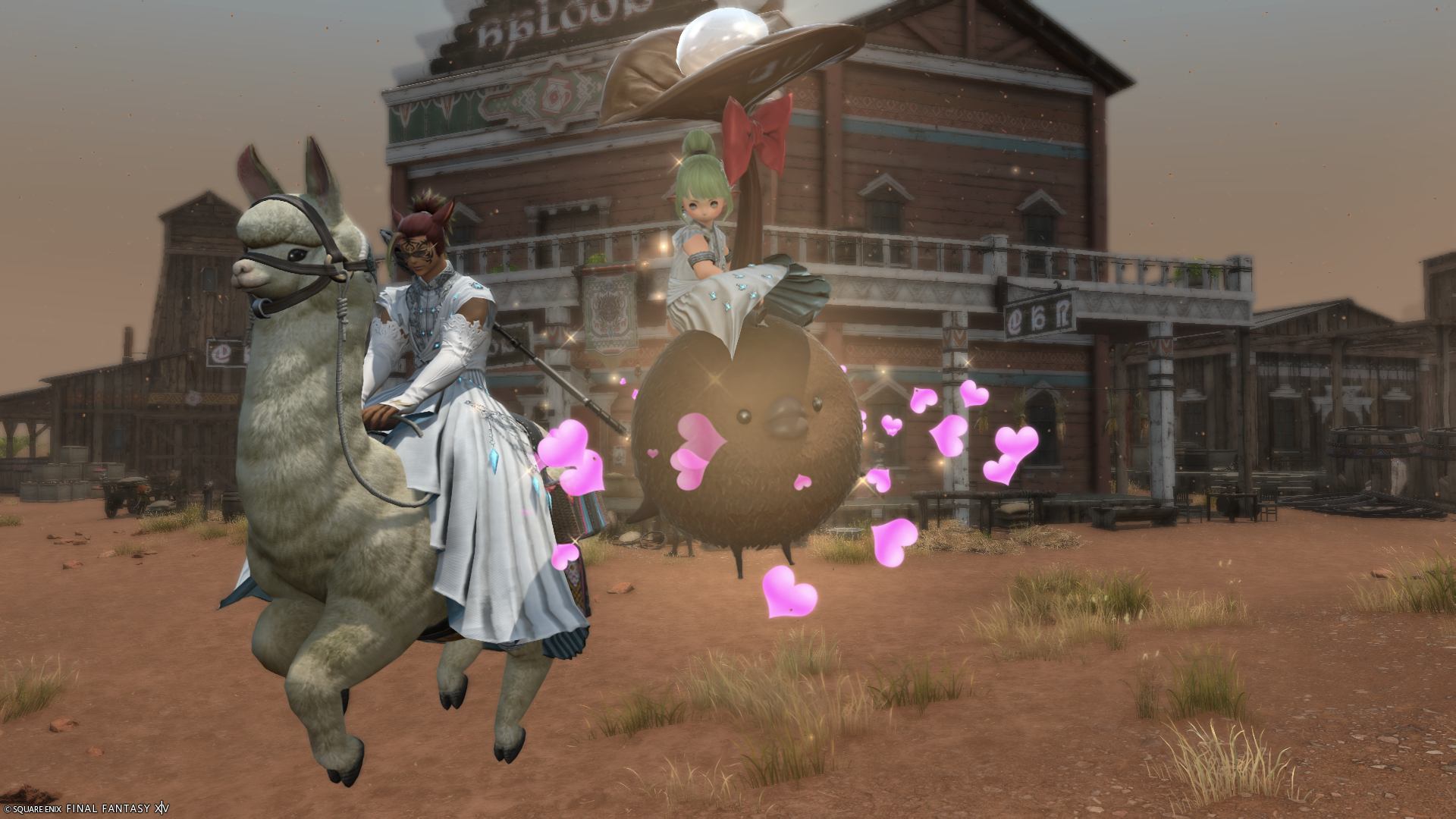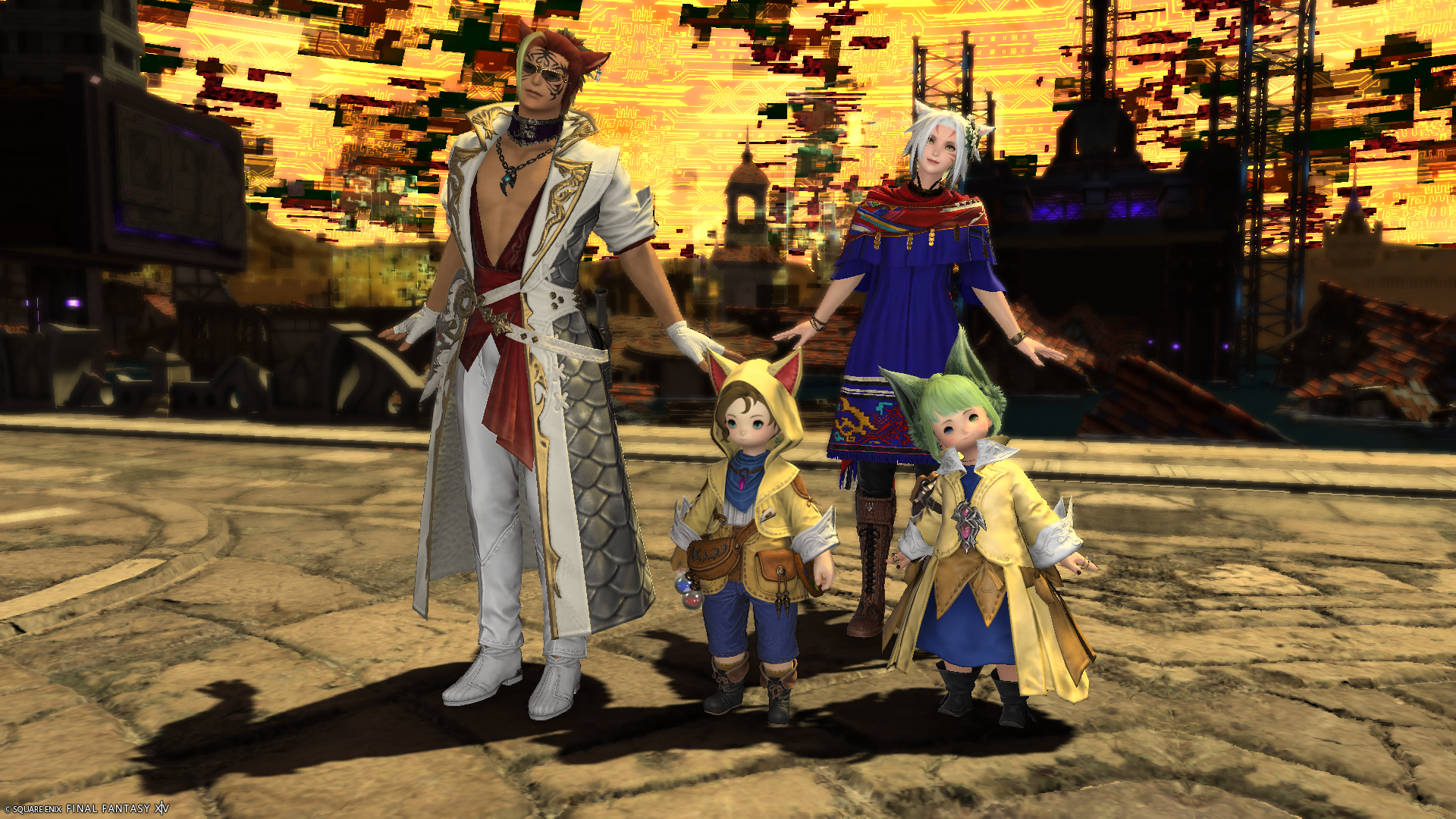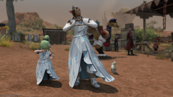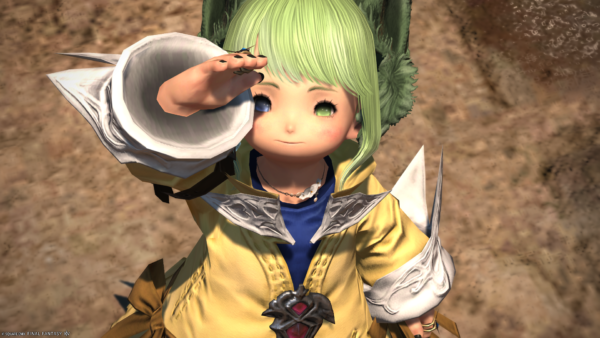 シャーローニ荒野のF.A.T.E.ランクが最大になったので交換品を見に来たのですが、グラサンかけたいかついミコッテさんにおそろいっぽい格好をされて悲しむララフェルの図。
