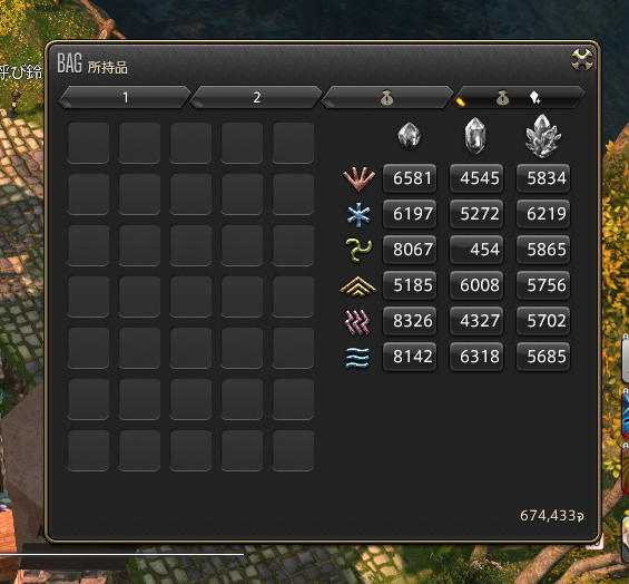黄金のレガシーのアーリーアクセスが始まってから、メインクエストを進めつつ素材を集めてはせっせと加工しつづけていたわけですが、気が付いたらクリスタルがめっちゃ減ってた!