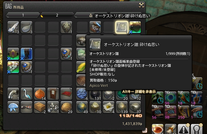 先日レアF.A.T.E.かリスキーモブ討伐でもらった古びた譜面を完成させて覚えておきました。