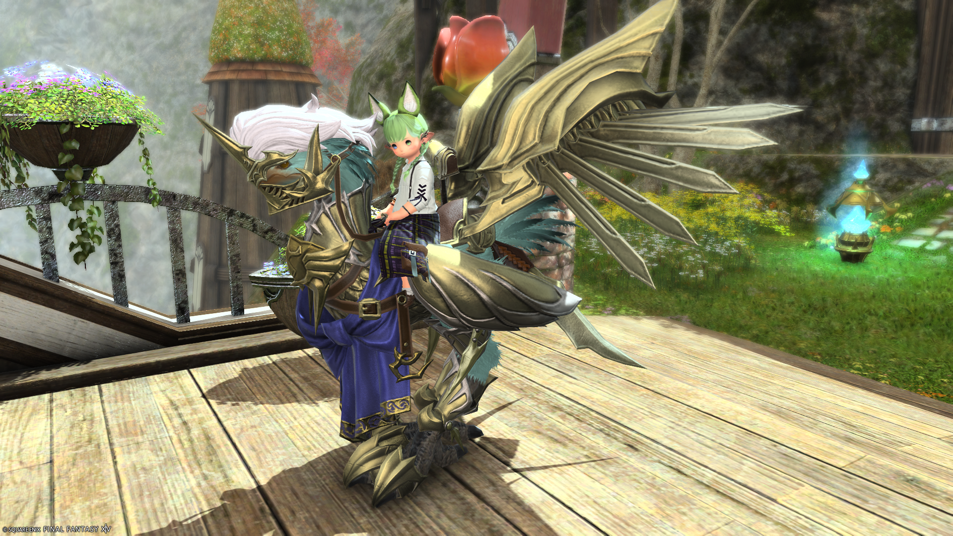 こちらも若干ララフェルのが小さいです。こちらのマウント、BGMがFF9の戦闘曲で懐かしいです…。