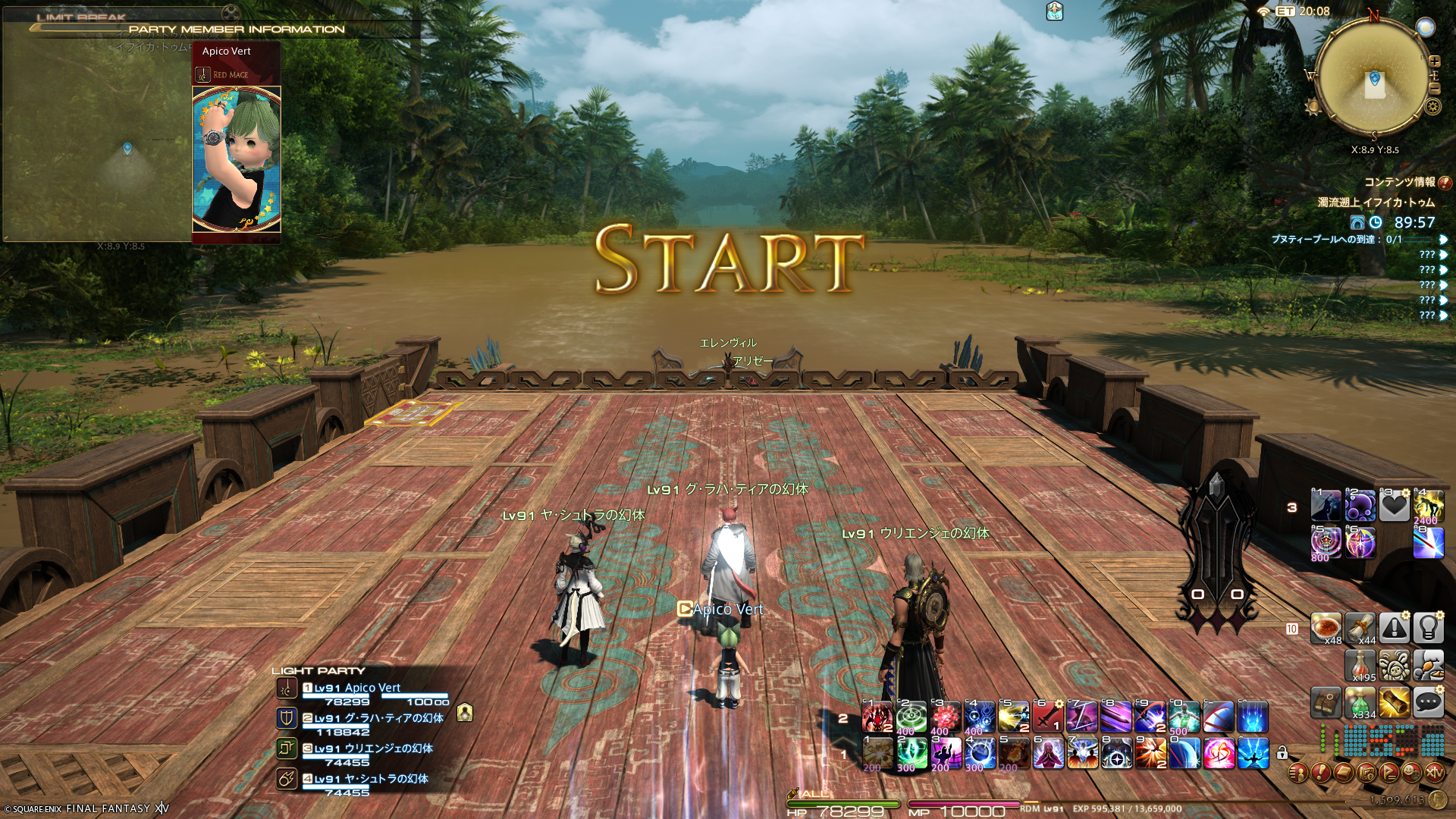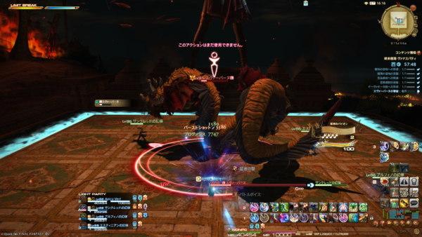 途中のボスでウリエンジェさんが転がっちゃって!びっくりしたよー。まぁたまにありますよね、NPCが転がっちゃうこと。うわーどうしよう!?あ、そういえば赤だから蘇生できるんだった…と慌てて蘇生を試みるも、ホットバー登録してある蘇生アクションがヒーラーとは違う位置だったので、あれ!?あれ!?ってなりました。