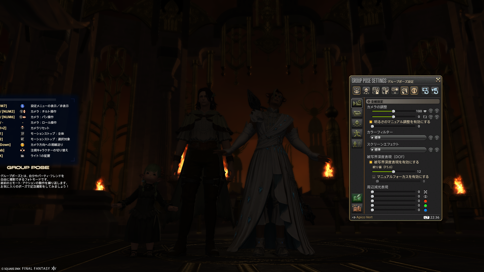 アグライアの最後の戦闘場所で、グループポーズを起動して「明るさのマニュアル調整を有効にする」をチェック。マニュアル調整をしようとしたときに、明るさの数値を変えてもぜんっぜん明るさが変わらないのです。