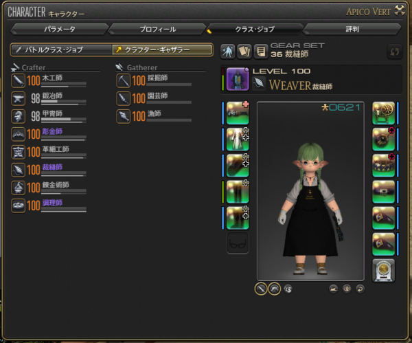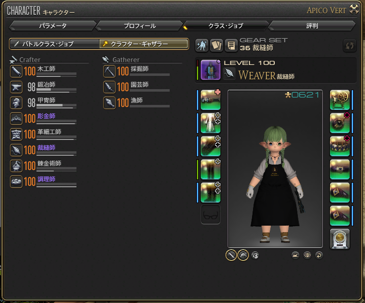 こちらが本日作ったクラフター用のレベル100装備です。