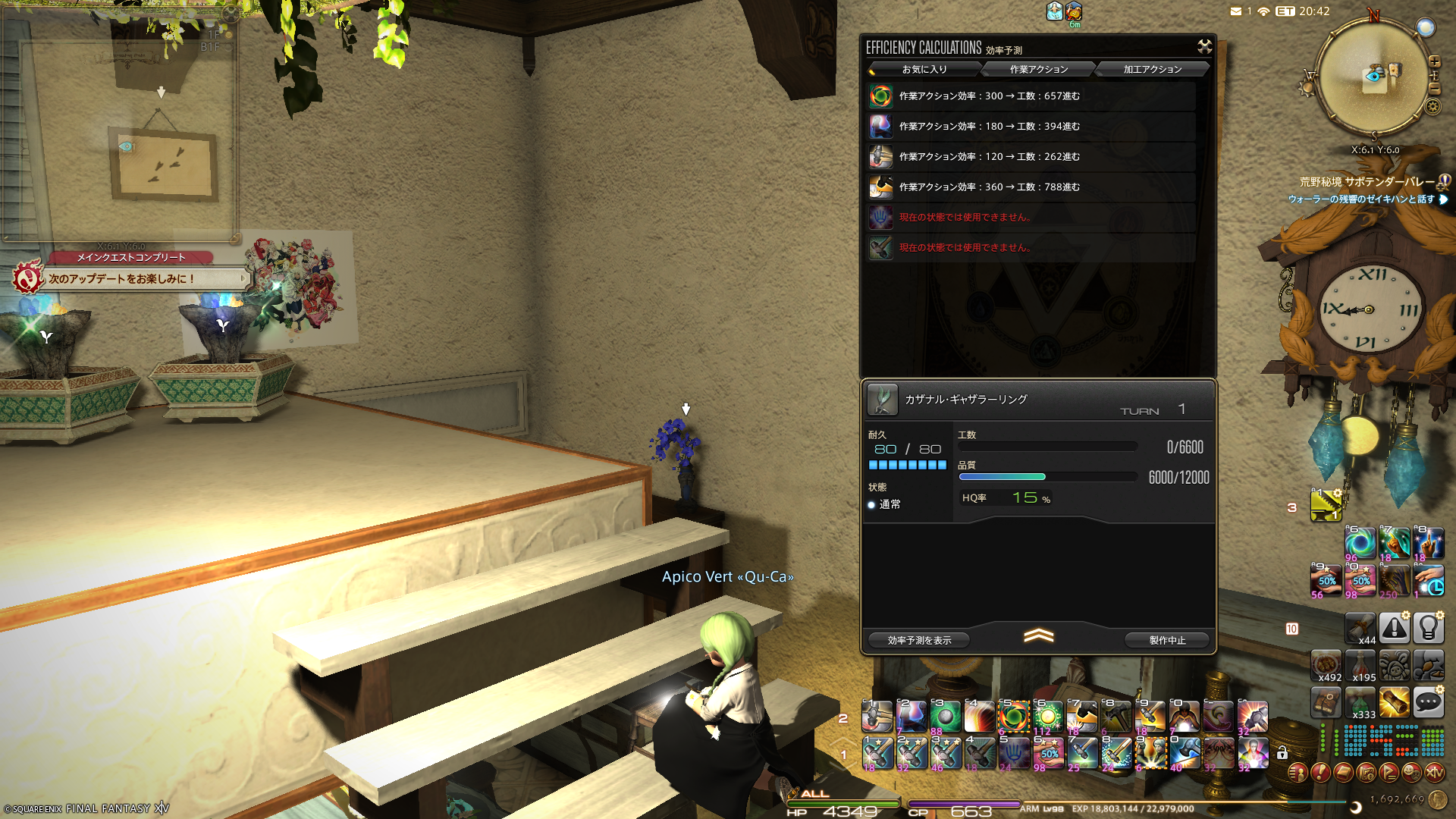 ギャザラーのアクセサリーを作った後は、クラフターの道具以外の装備を作りました。道具は…数が多いのでちょっと装備品の整理をしてからにします。