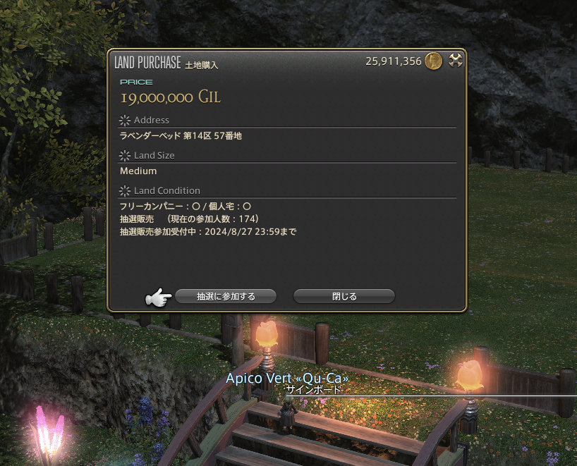 Mサイズの土地の空きがあったので気まぐれに応募してみました。