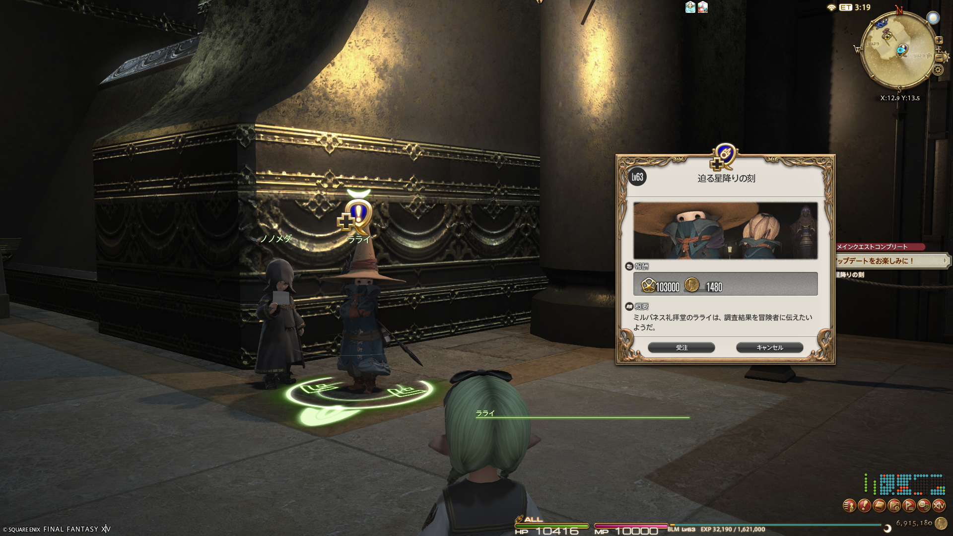 で、クエストを進めたおかげで、黒魔道士のレベルがあがって新しいクエストが受けられるようになったので、ジョブクエストへー。