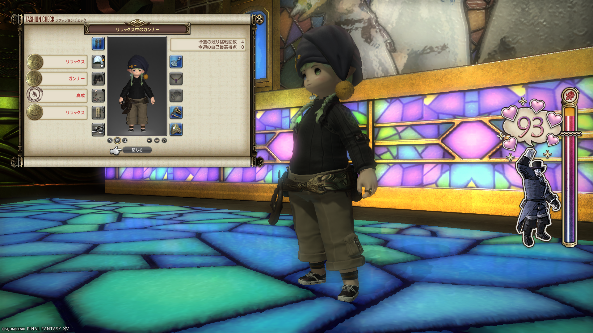 今数は93点!と高得点でした。それにしてもテーマの「リラックス中のガンナー」って…。