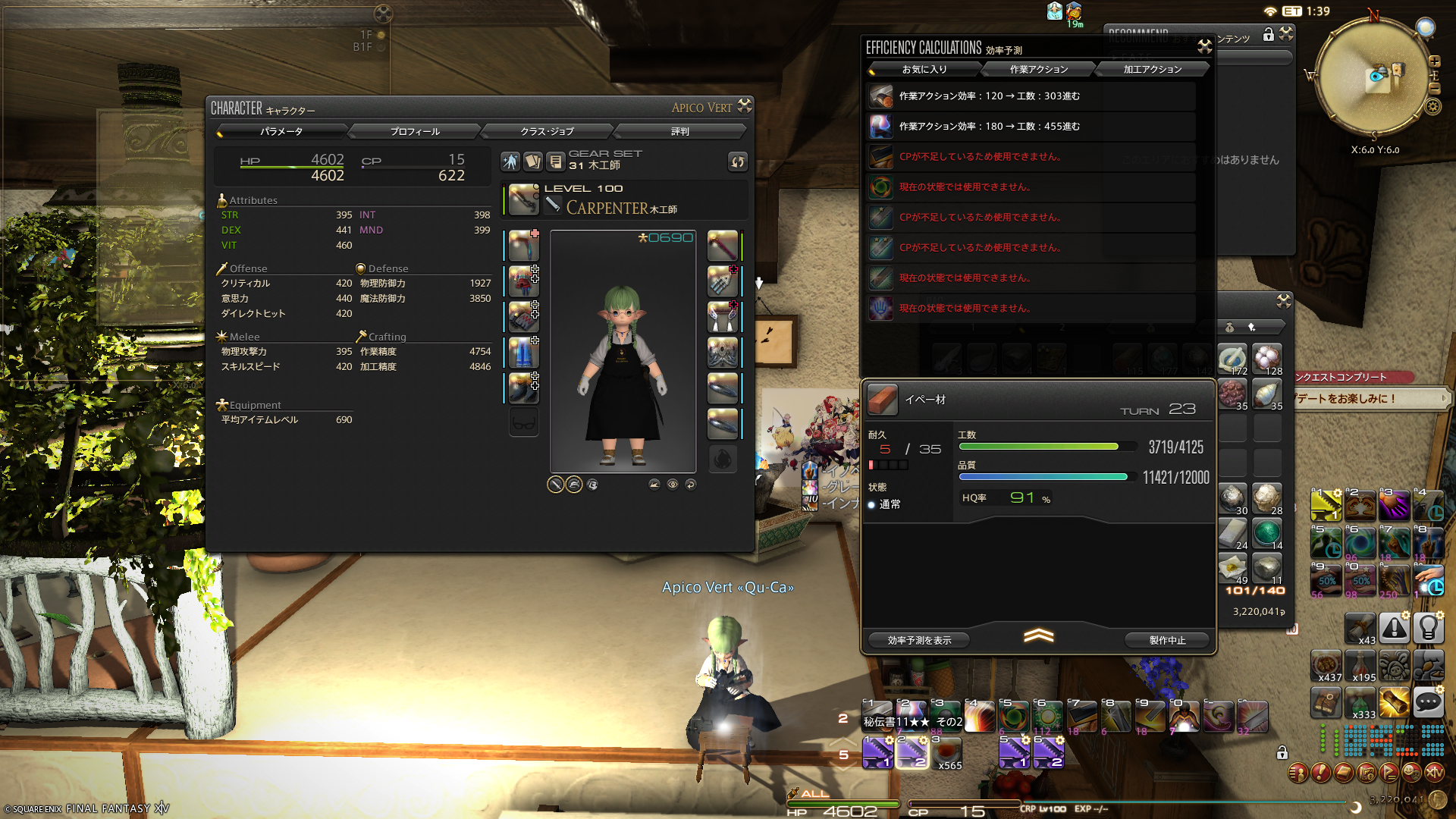 ステータス不足で運がよくないとHQ率100%には達しませんが、90%以上ならまあ…いいかな。