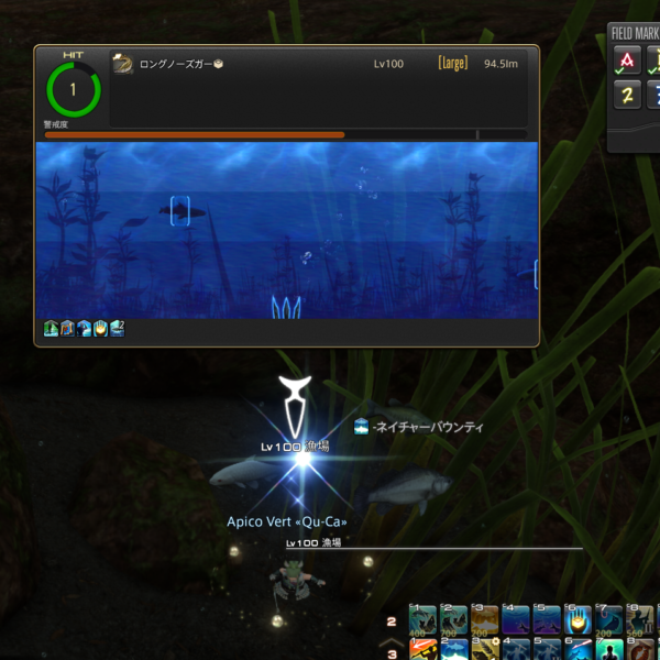 大きい魚影で早く移動するのがロングノーズガーです。大きいので普通の早さで移動していても、なんか早く見えちゃって最初何度か突き間違えました。