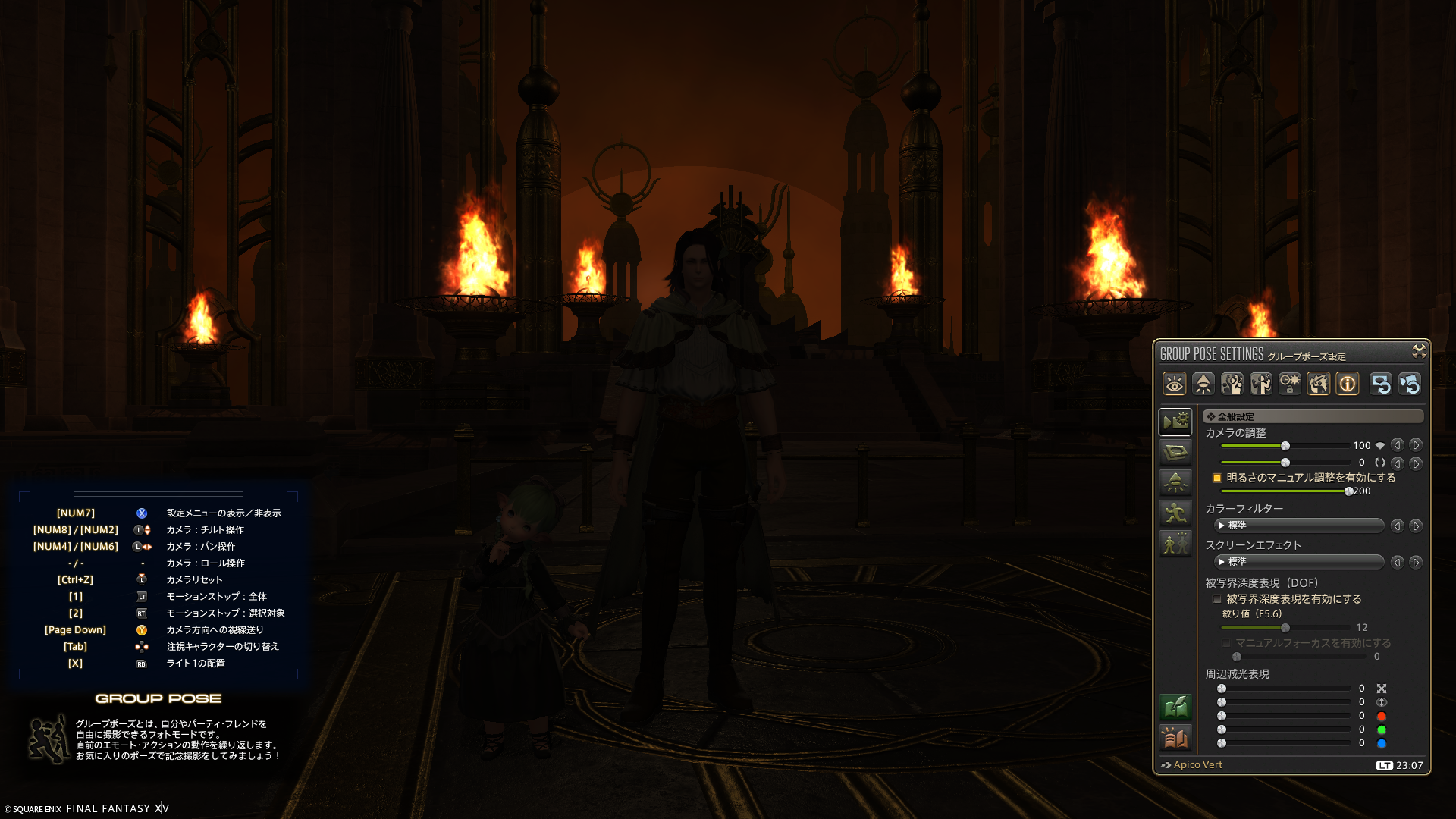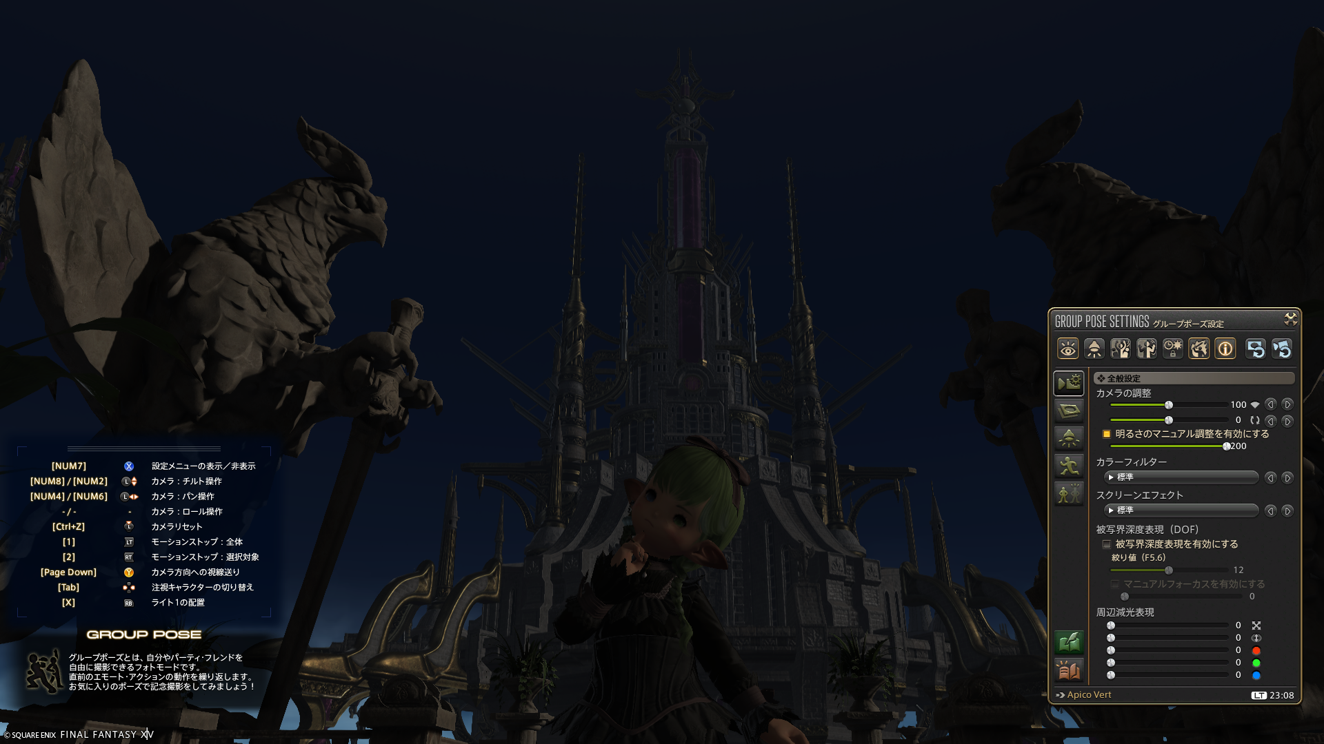 アグライアでグループポーズを起動して、明るさのマニュアル調整にチェックを入れて有効にすると…