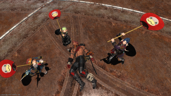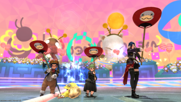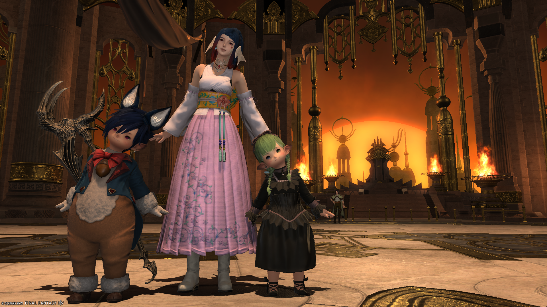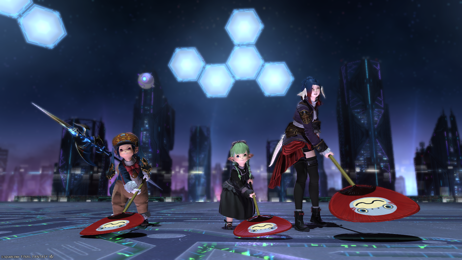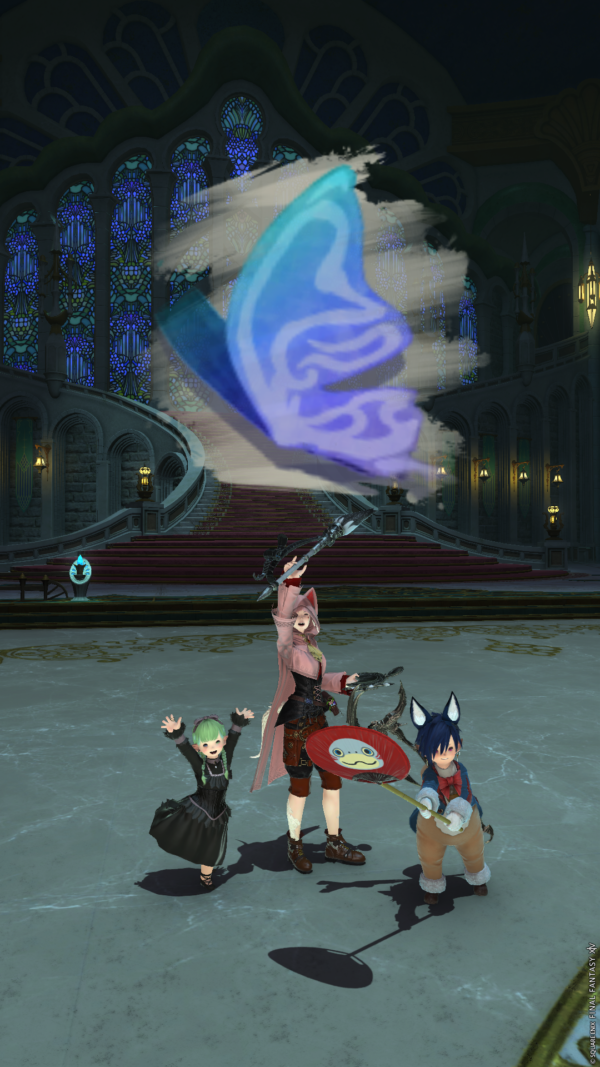 上の写真、一番右に謎な生物が写っておりますが…アウラさんのミニオンミニアトモスがちょうどいい具合に一番右にいるミコッテさんと重なっていたので…ミコッテさんにはアトモスモザイク?掛けておきました。