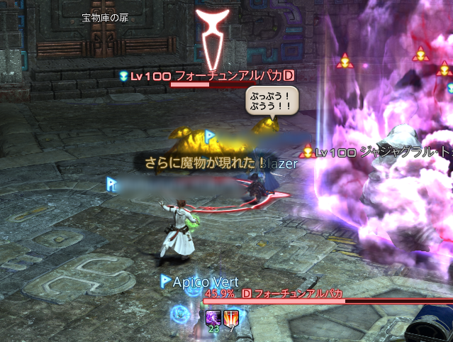 G17の地図では宝物庫の攻略中に金色のアルパカが出てくることがあるのですが、ぷっぷう言っててかわいいです。