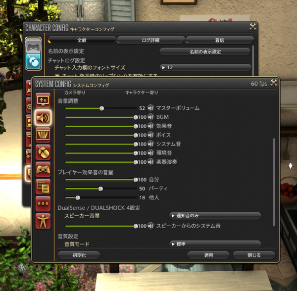プレイヤー効果音の音量というのがあったので、自分以外を小さくしてみました。これでわかりやすくなるかなぁ?ちょっと様子見です。