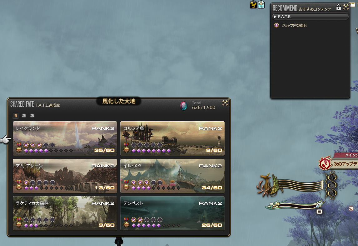 ということで、ジェムを稼ぎたいので、まだF.A.T.E.ランクがコンプリートしていない漆黒エリアでF.A.T.E.。