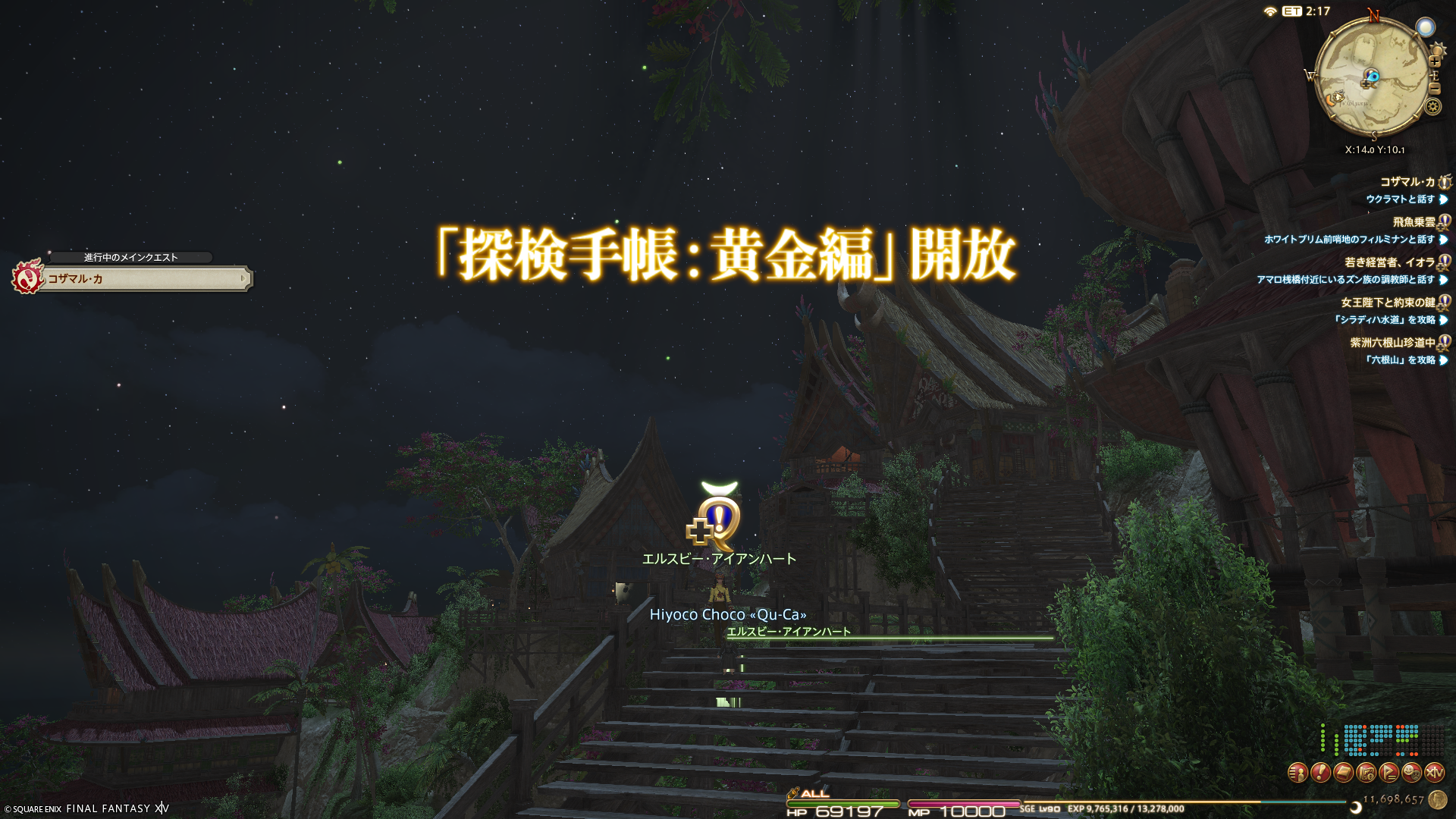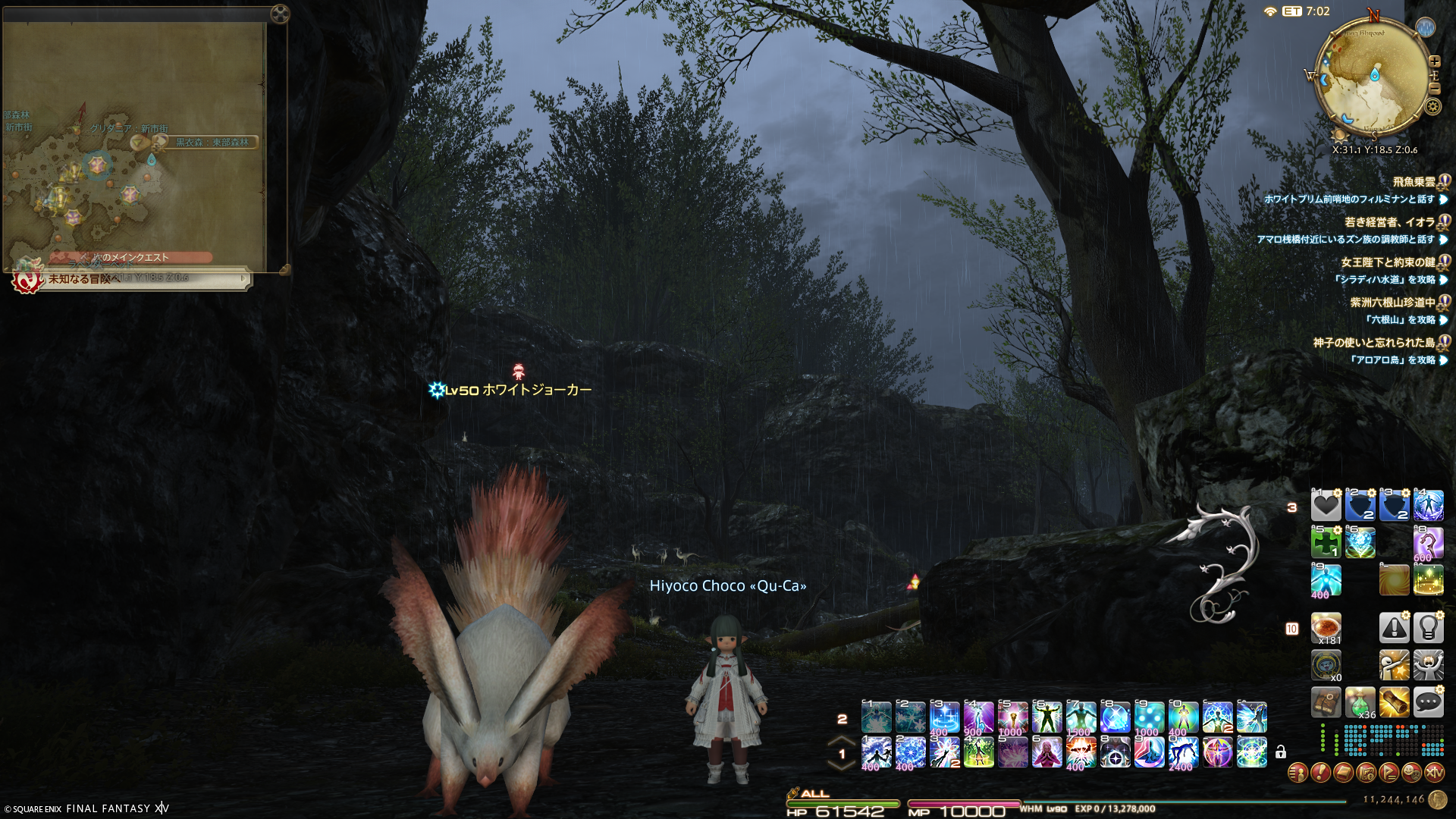 ひよこちゃんと呼んでいるこちらの倉庫ちゃんは、もともと素材を持たせるための倉庫として誕生させたキャラクターです。もう一度シナリオをたどろうとメインクエストを進めているうちに、結局最後まで進み。現在暁月が終わったところまで進んでおります。