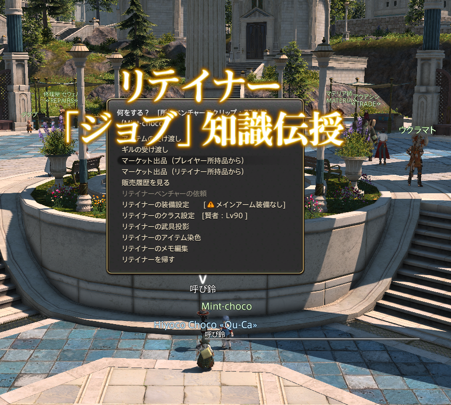 そうだ、メインクエストを進める前に、リテイナーのジョブ変えておこうっと。