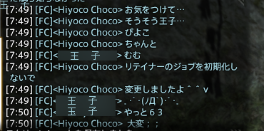 ちょうどFCに王子さまがいらしたので、ちゃんとジョブ変えたよって報告したら、初期化した王子さまのリテイナーはやっとLv63になったようでした。