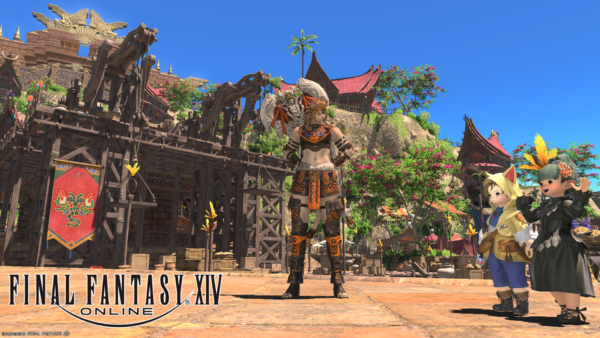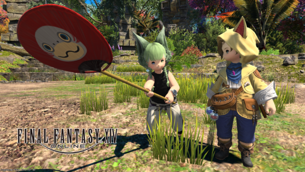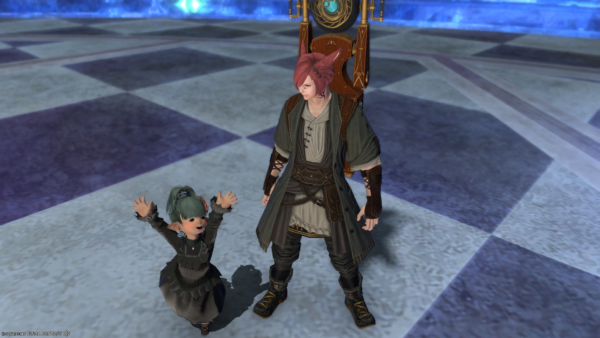 攻略後、クルルさんにうちわを自慢するララフェル。