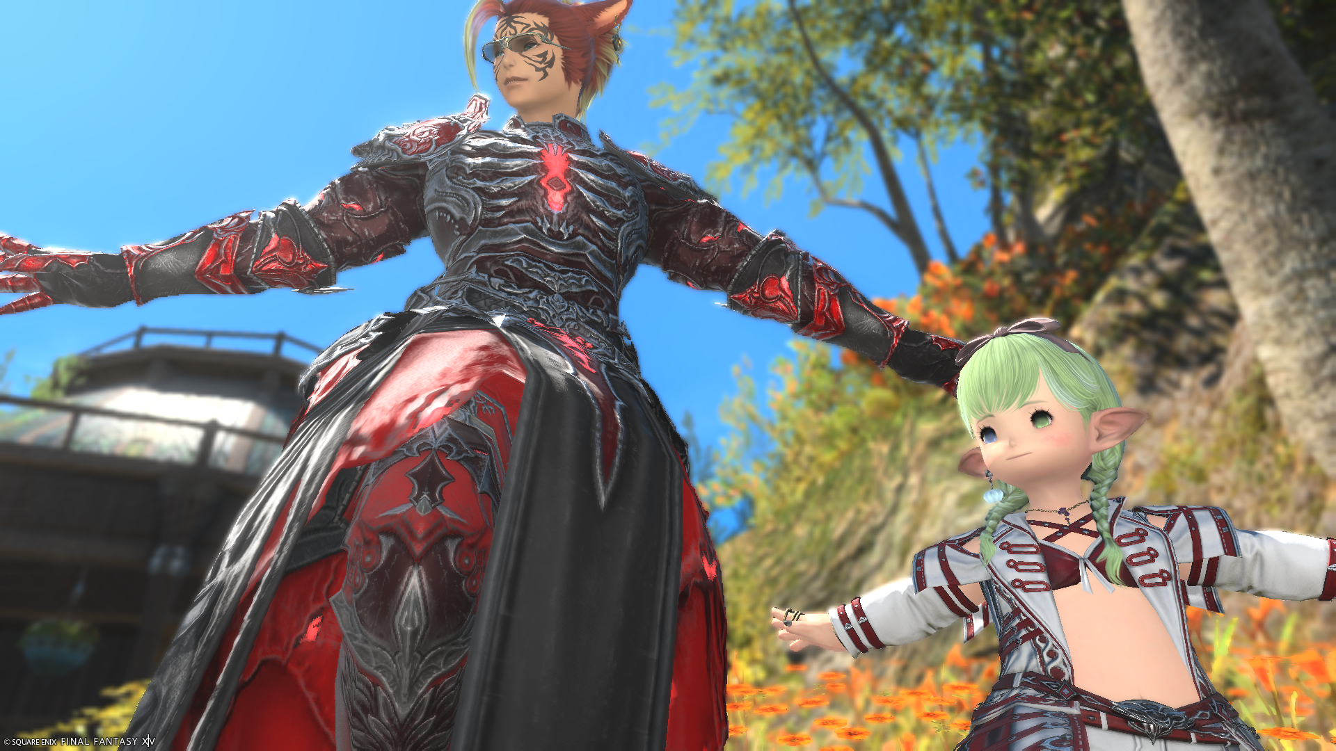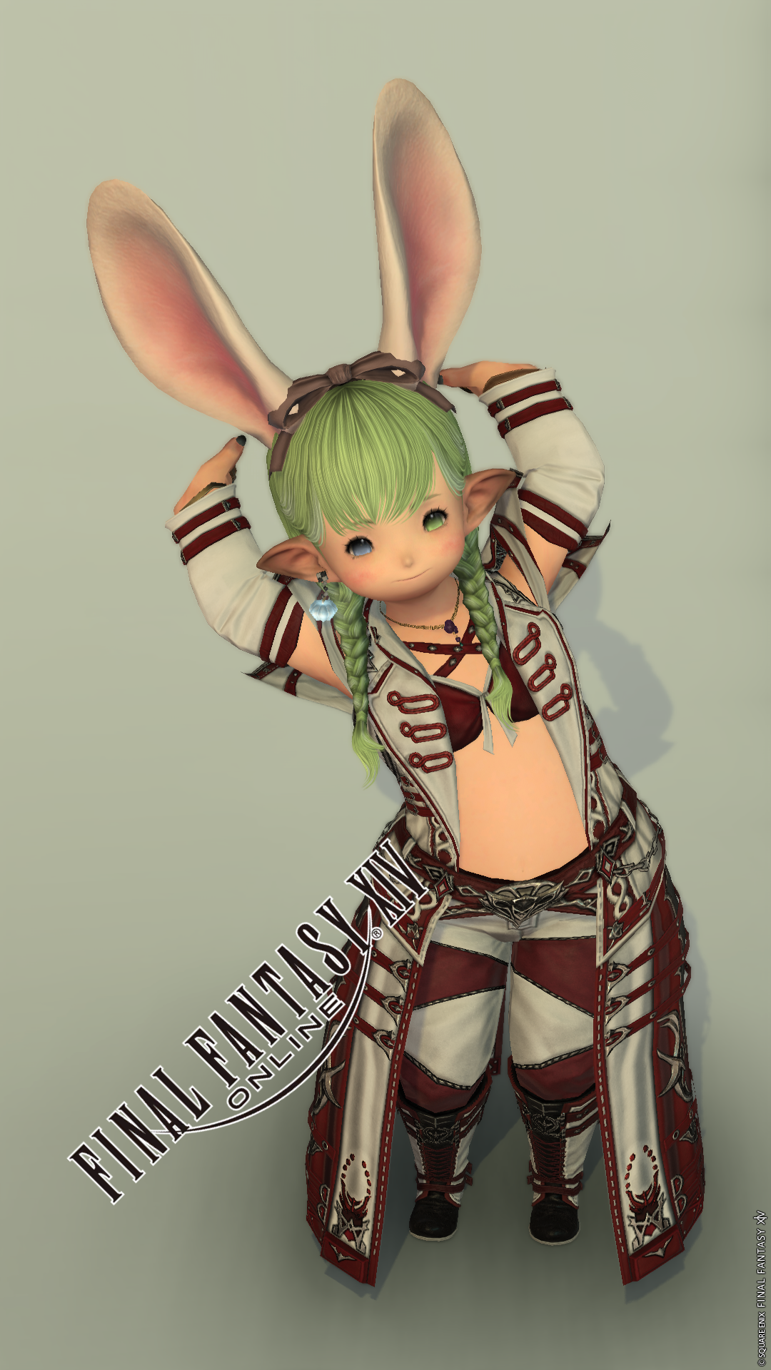 露出高いのにぜんぜんせくしーじゃない、さすがララフェルです。他の種族さんだとセクシーなんだろうな…。染色できるものだったら胴装備はいろいろ使えそうだけど、染色できる装備を手に入れられるとしたら次回のまた次の拡張ディスク後でしょうかね…。