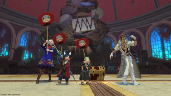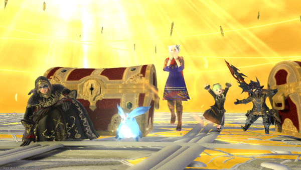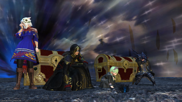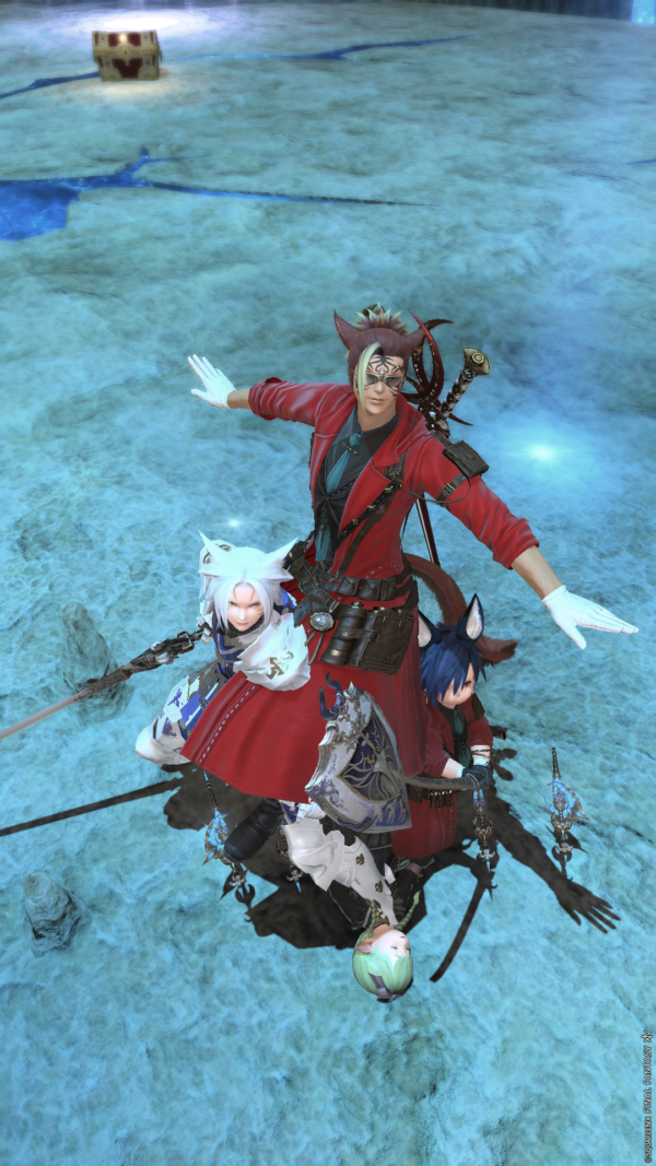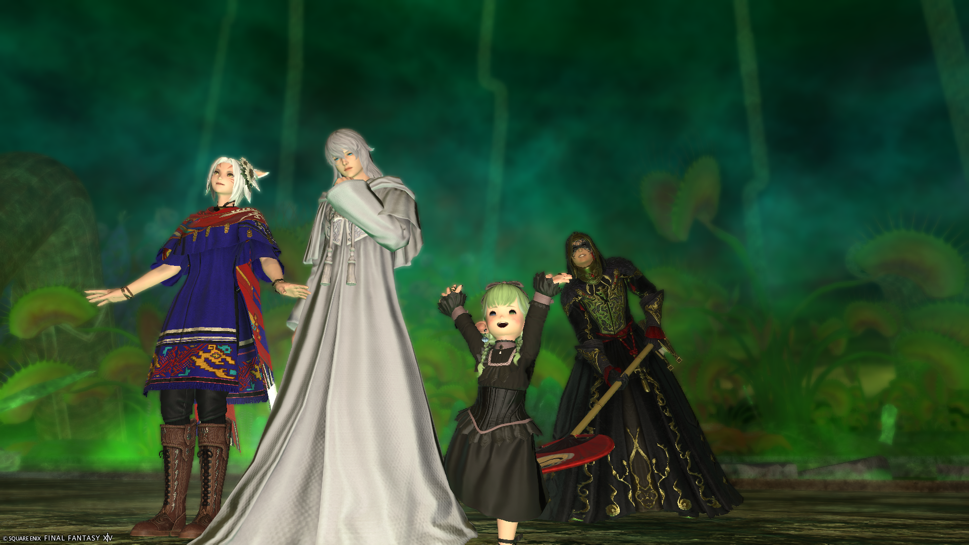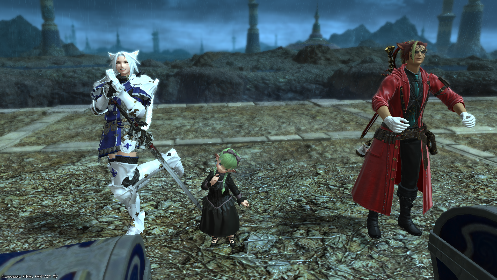 こちらはハイレベリングのルーレットで戦闘不能になったララフェルの上でポーズを決めるみなさま。