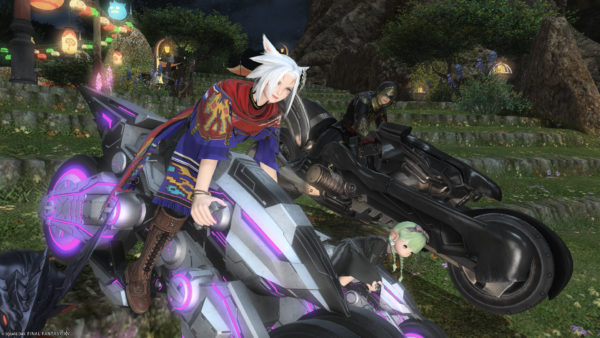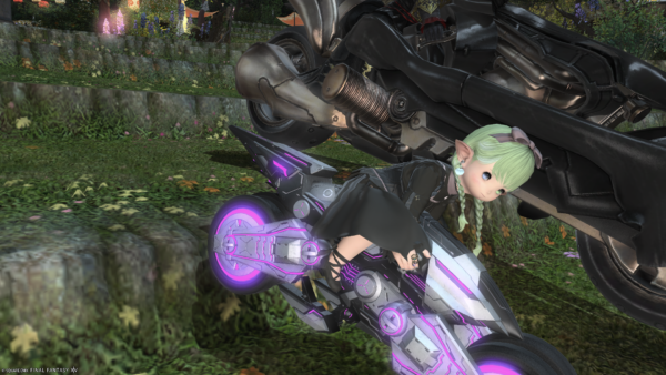 ん…ここで気が付いちゃったのですが、このバイクマウントのサイズ自体がララフェル用にちっこくなっているので、ララフェルでも手と足がちゃんとあるべきところに収まっていいはずなんですけど、足が届いていないということは…
