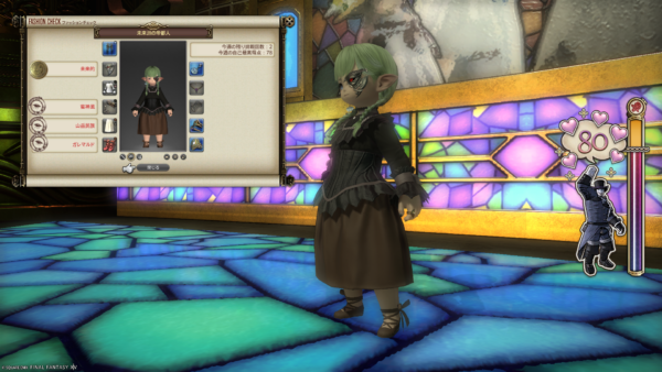 こちらの頭装備は、たしか新生エリアの友好部族クエストの信頼度をすべて上げると発生するクエストの報酬でした。クエストに出てくる変なミコッテが付けてるんですよね。これ使うことあるかな…と思いつつしまっておいてよかったです。