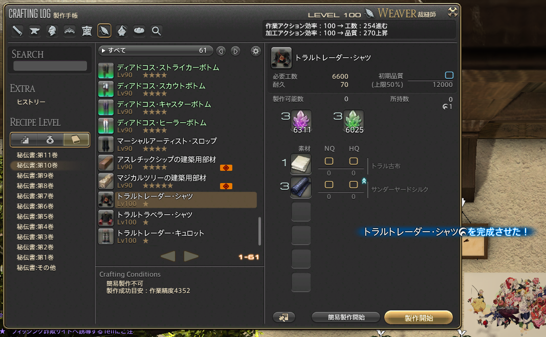 ということで、お目当てのおしゃれ装備のトラルトレーダー・シャツを作成しました。