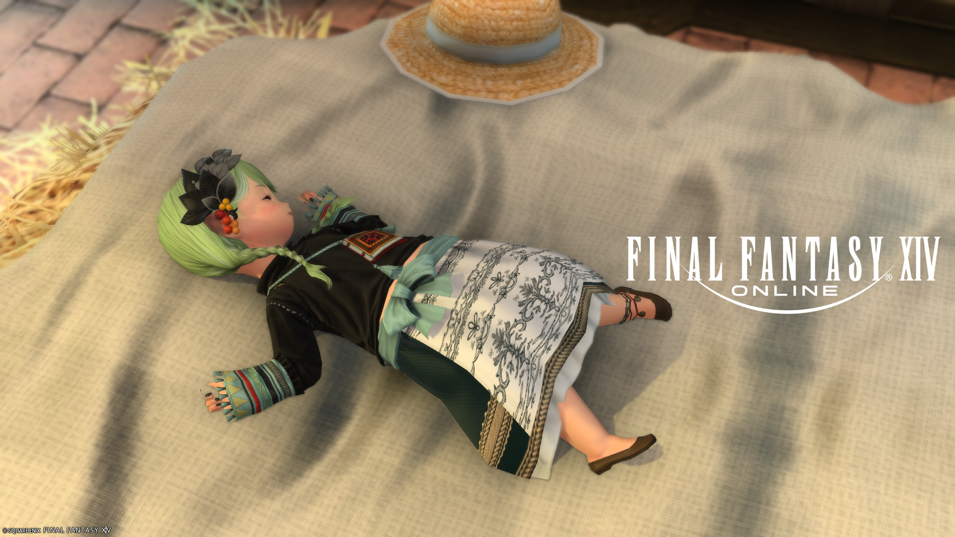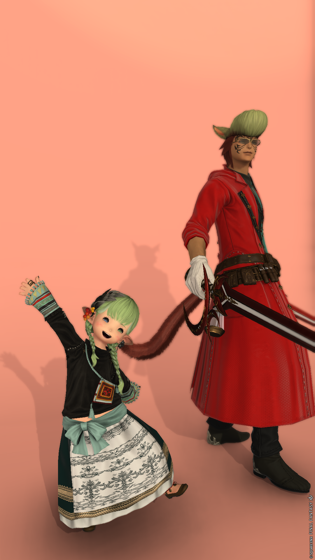 黒ベースだったので、1枠目はそのままの色にして、2枠目をセレストグリーンで染色。脚装備はデニムと合わせている方が多いけど、民族衣装っぽくしたくてこちらのスカートにしてみました。エプロンの白いところが目立ちすぎるので、他になにかないか探し中です。