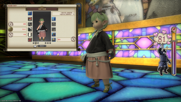 この装備、はやりの短め丈でちょっとおなか見えてるの。そしてポシェット?もついてるの。かっかわいい~。