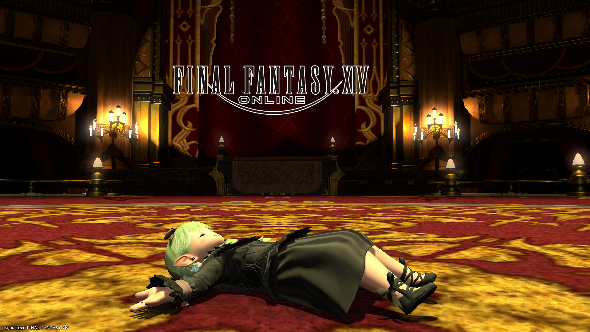 死んだふりエモートのおかげでどこでも寝られるようになったから、寝てみたかったこの場所で寝てみました。舞台の上で寝てみたかったの。