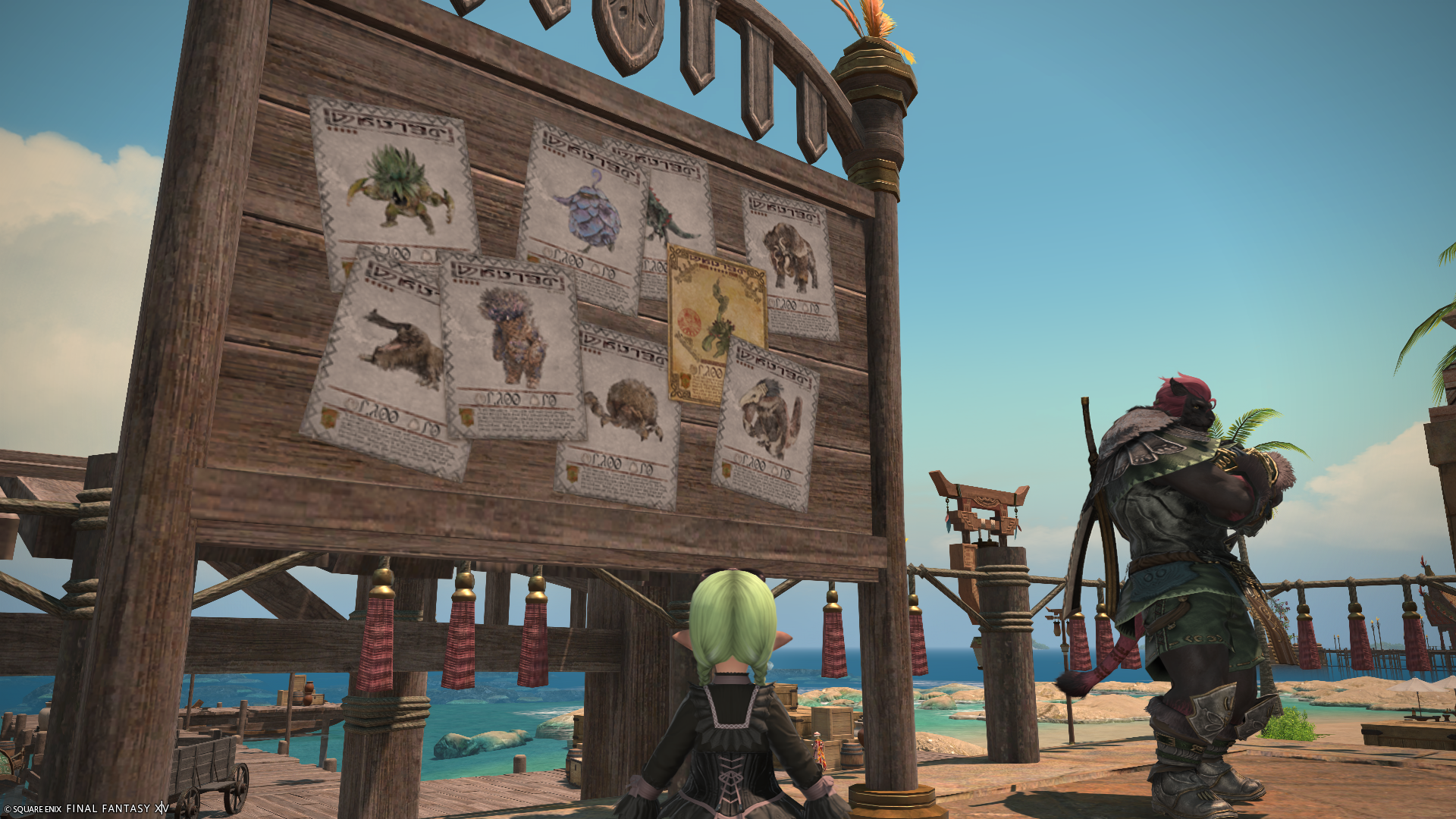 モブハントの手配書のボード、よく見るとリスキーモブ?のモンスターが書かれてある~!ほんとに手配書貼ってあるのですね。