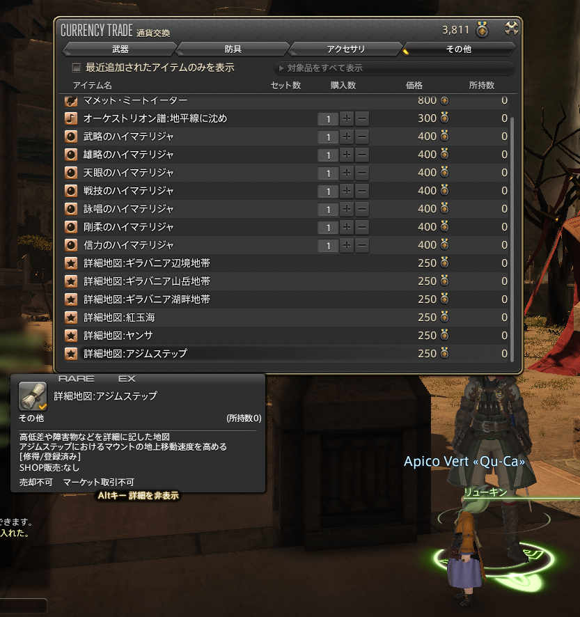 グリダニアから近いのでいつもラールガーズリーチで指名手配書をもらいます。そのついでにちょっと交換品をチェック。