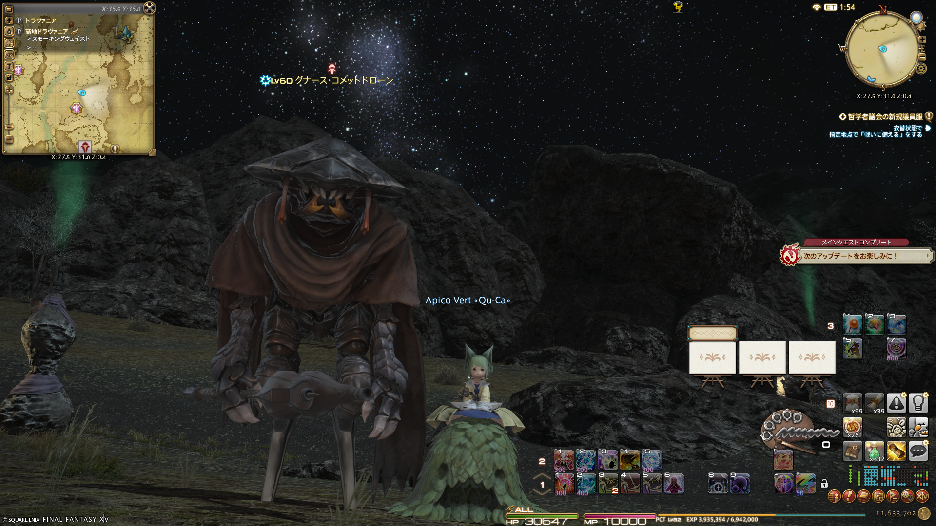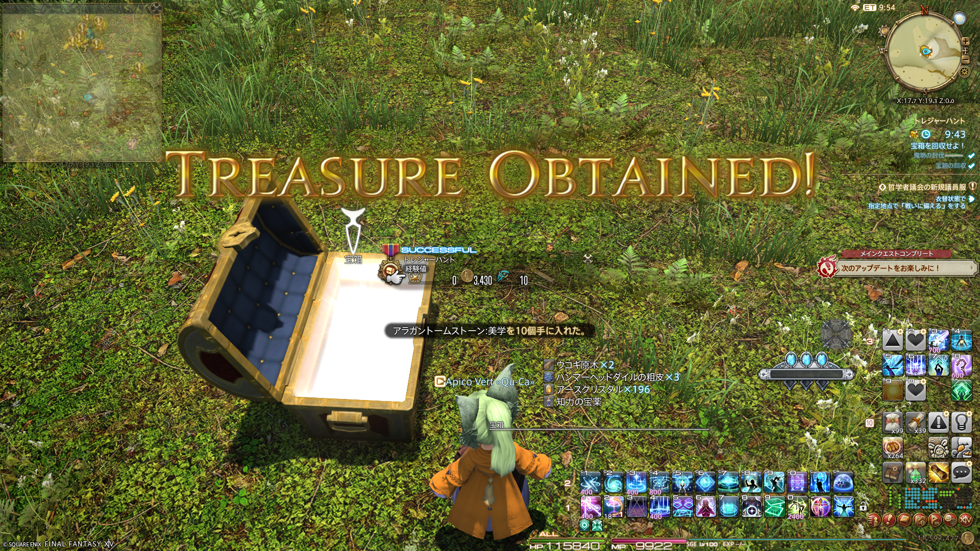 いつもならイシュガルドで蒼天エリアの指名手配書をもらった後、イディルシャイアでクロの空想帳をわたして新しいのをもらって…からはじまるのだけど、先週の空想帳がまだ終わっていないので、まずは日課の宝の地図開けへ。
