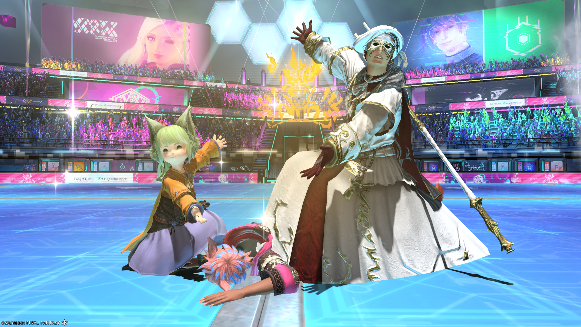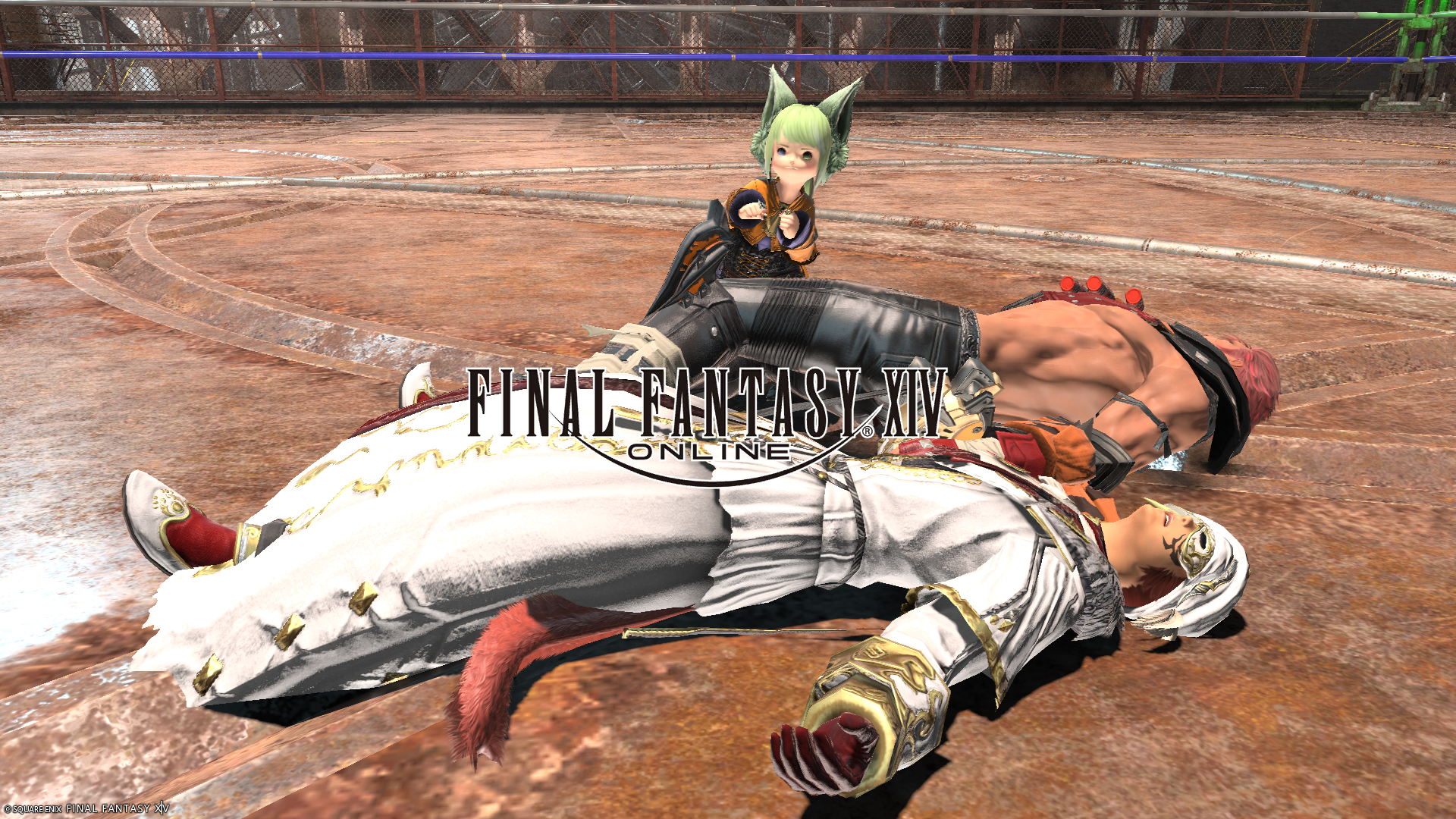 ねこちゃんが使ってくる投げ技攻撃、最後の方でひびが入った床に落ちようとしてる人がいるので、ああ、この人転がっちゃう~!って思ってよく見たら、FCメンバーさんでした。