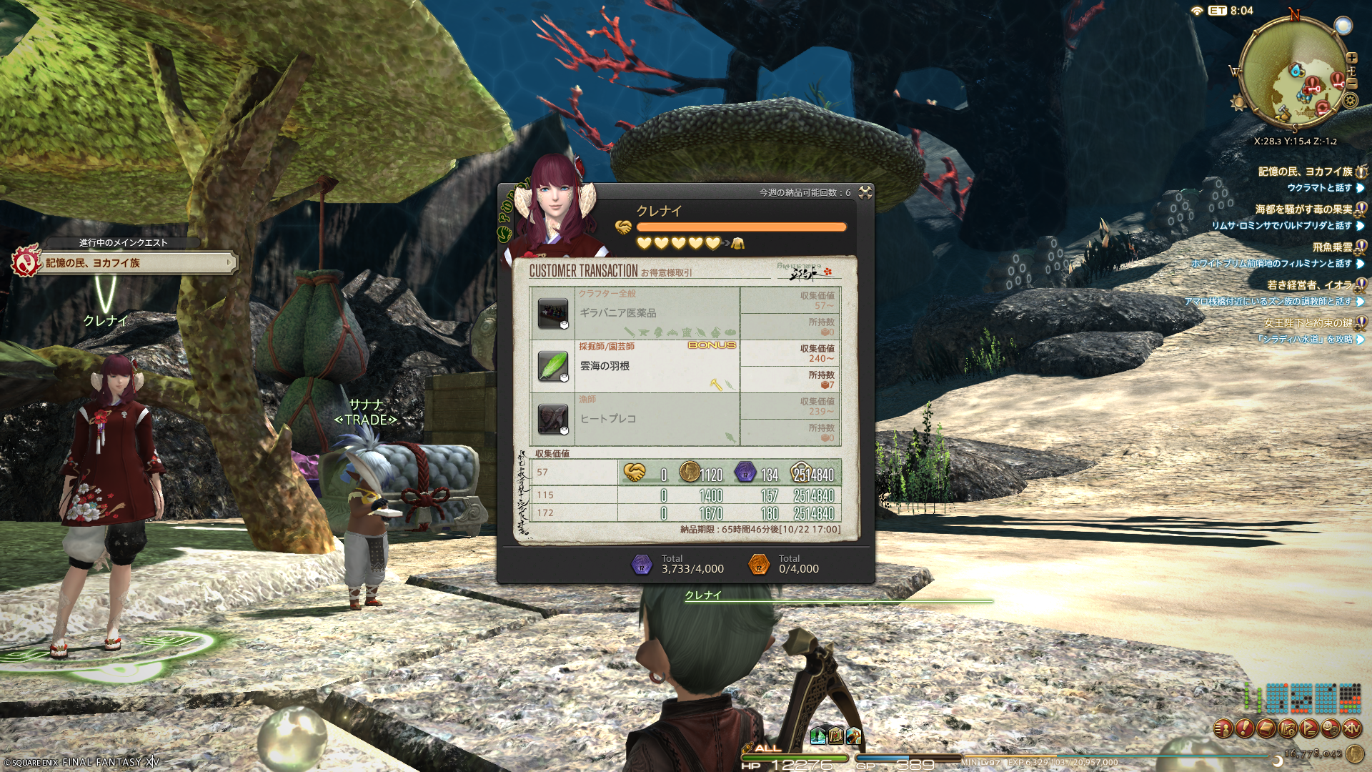 倉庫ちゃんでお得意様取引も済ませ、倉庫ちゃんのギャザラーは園芸・採掘ともにLv97となりました。Lv100まであとちょっと~!あと3週かな。