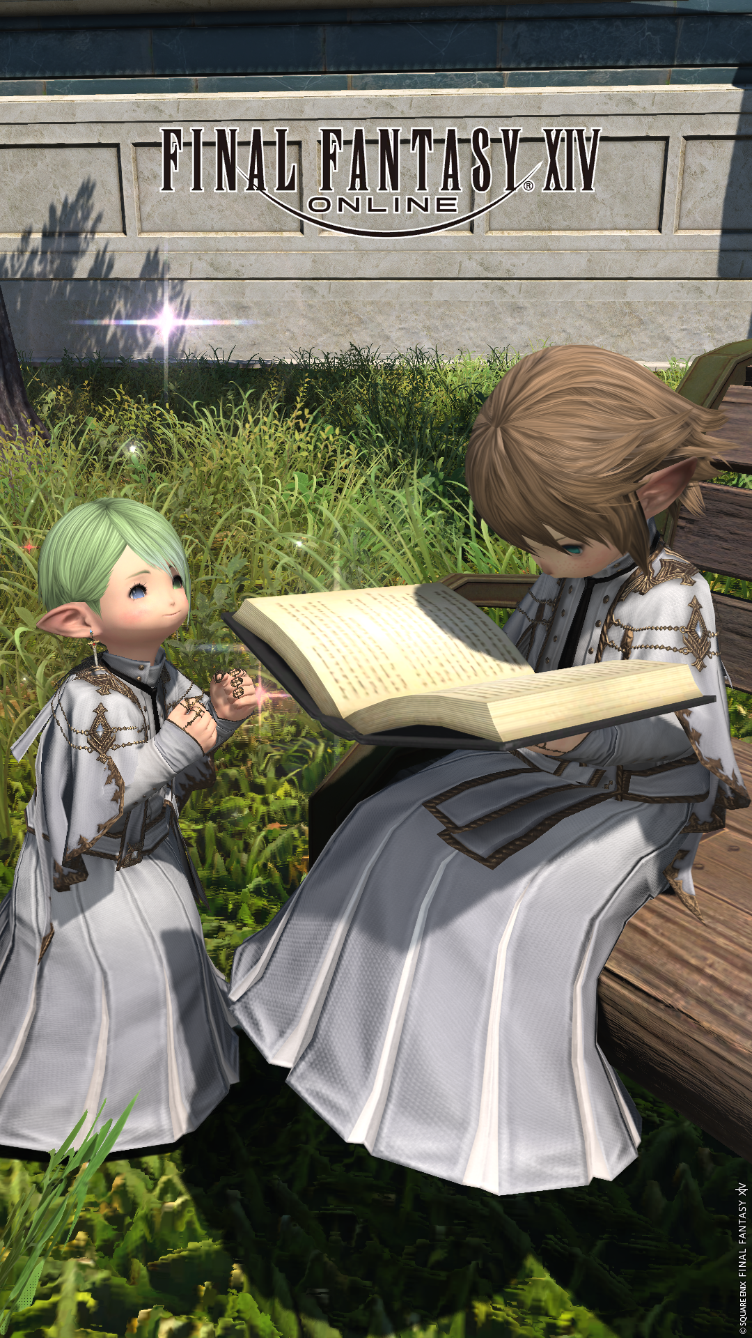 お気に入りのずっと本を読んでいるララフェルNPCさんの元でも撮影。
