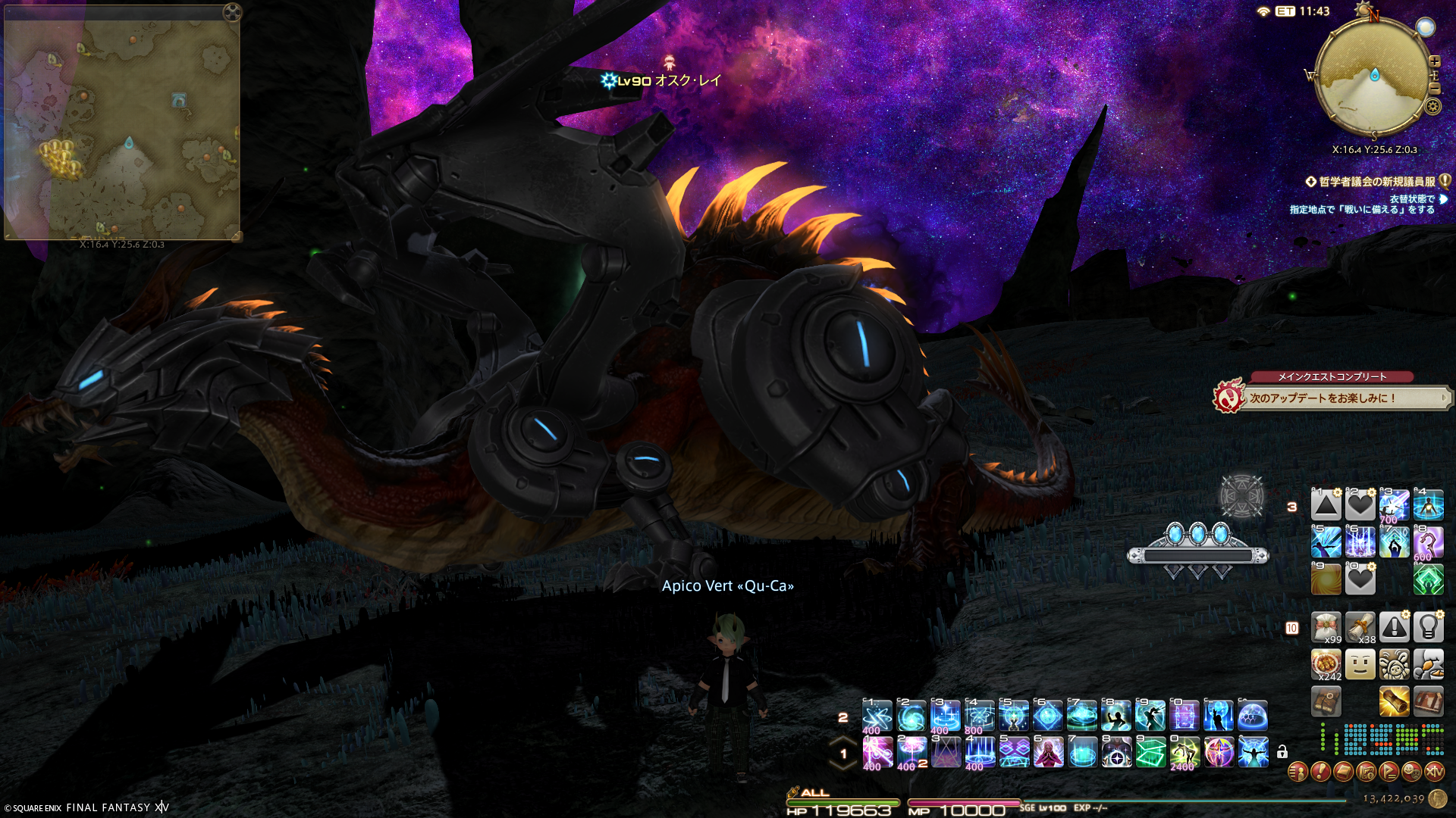 あわてて、オールド・シャーレアンへ行って納品。そしてそういえば…と思い出し、とあるクエストでシャーレアンの哲学者議会の議員服に着替えてあれを確かめることに…。
