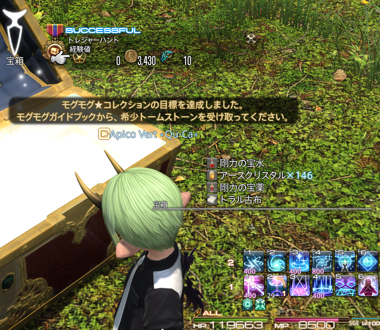この後はアレキサンダー起動編の1と4にチェックを入れて、食べてたご飯の効果が切れるまで連戦して、モグモグ★コレクションのトームストーン集めをしておきました。