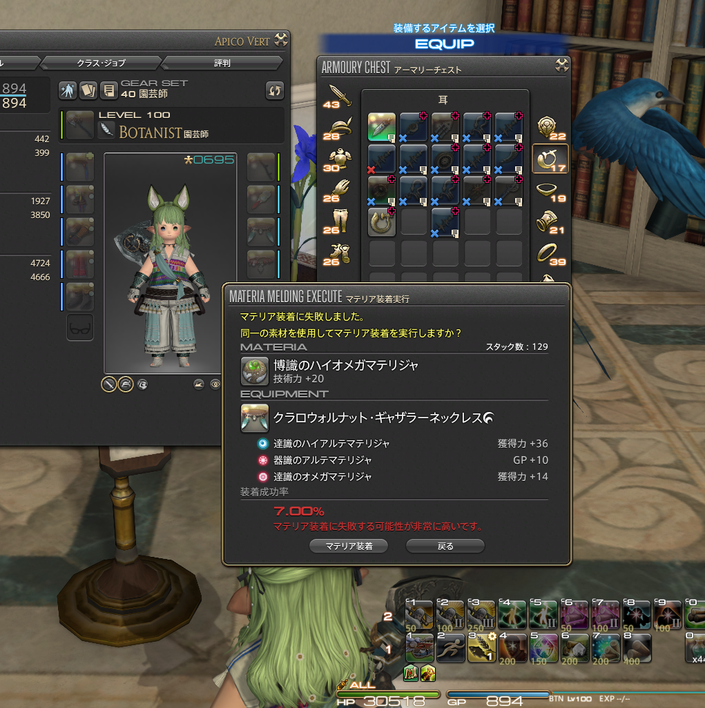 装備品はステータスの上昇が大きいけど、アクセサリを一新して禁断しなおすのも大変だしなぁ…ってことで、アクセ類はパッチ7.0の装備をそのまま使うことに。
