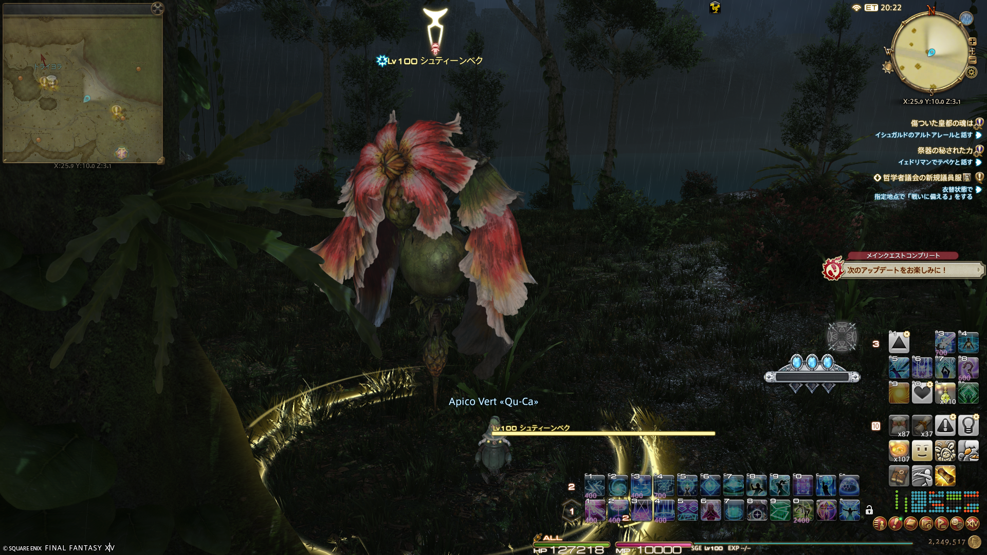 宝の地図開けでシャーローニ荒野にきて気が付いたのだけど、あれ、なにか重要なクエストっぽいのがあるー。普通のクエストは黄色に「!」のアイコンだけど、そうではない青に「!」のアイコンそして+のついてる、重要なクエストのマークがマップの中に見えるではないですかー。