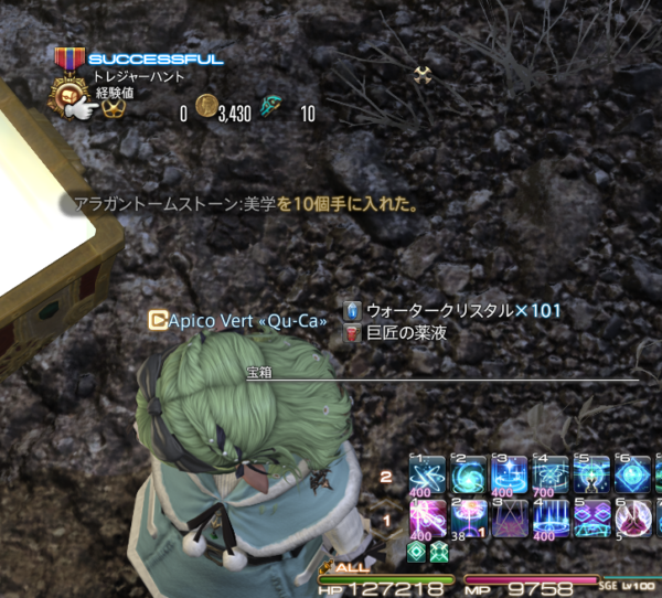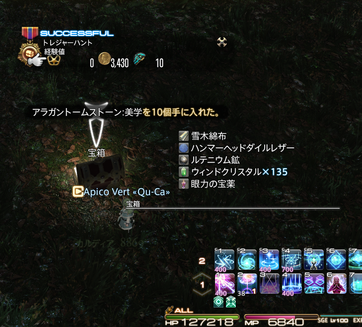 出るアイテムはこれで全部ではないと思いますが、FF14ではアイテムを使用する時にマクロが使えないから開けるのが面倒ですねー。今回開いてたホットバーにコンテナを登録して、ぽちぽちして開けました。マクロならもう少し少ないぽちぽちで済むのに。