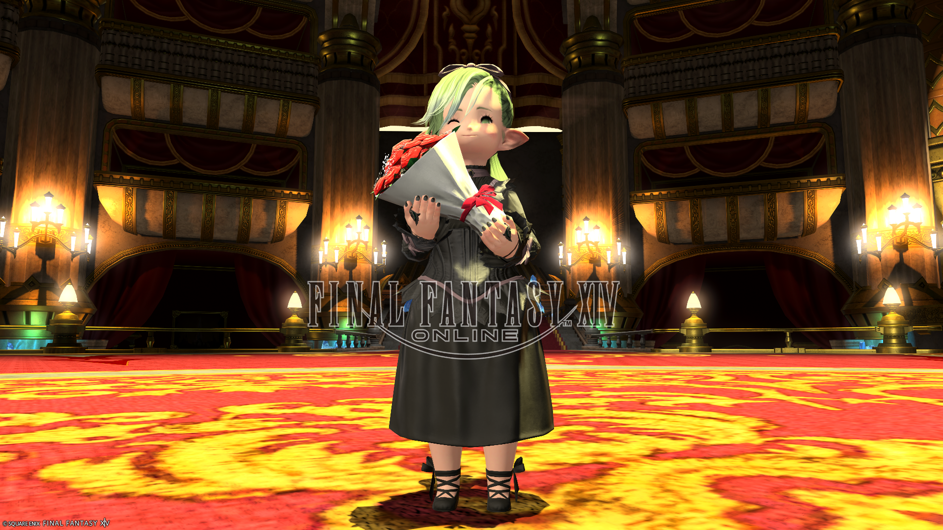 イベントの花束エモートを使って、お気に入りのララNPCさんにプロポーズ?!しておきました。