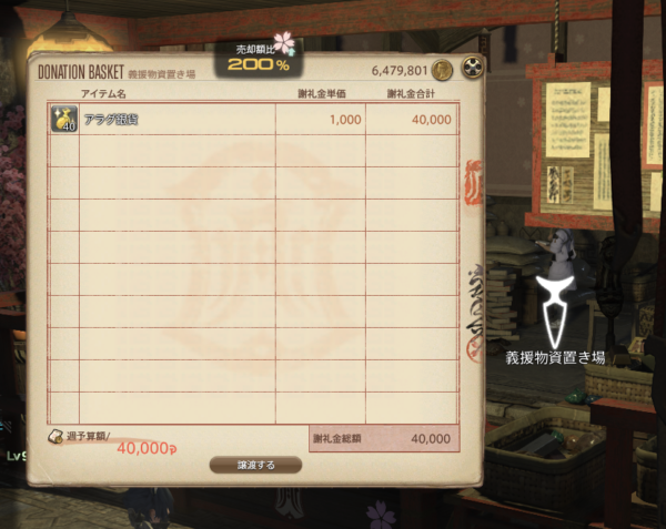 ミハシラの後はドマ町人地で今週分の支援物資という名の換金作業もしておきました。