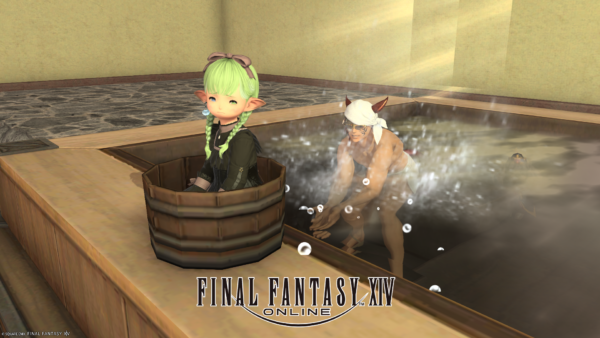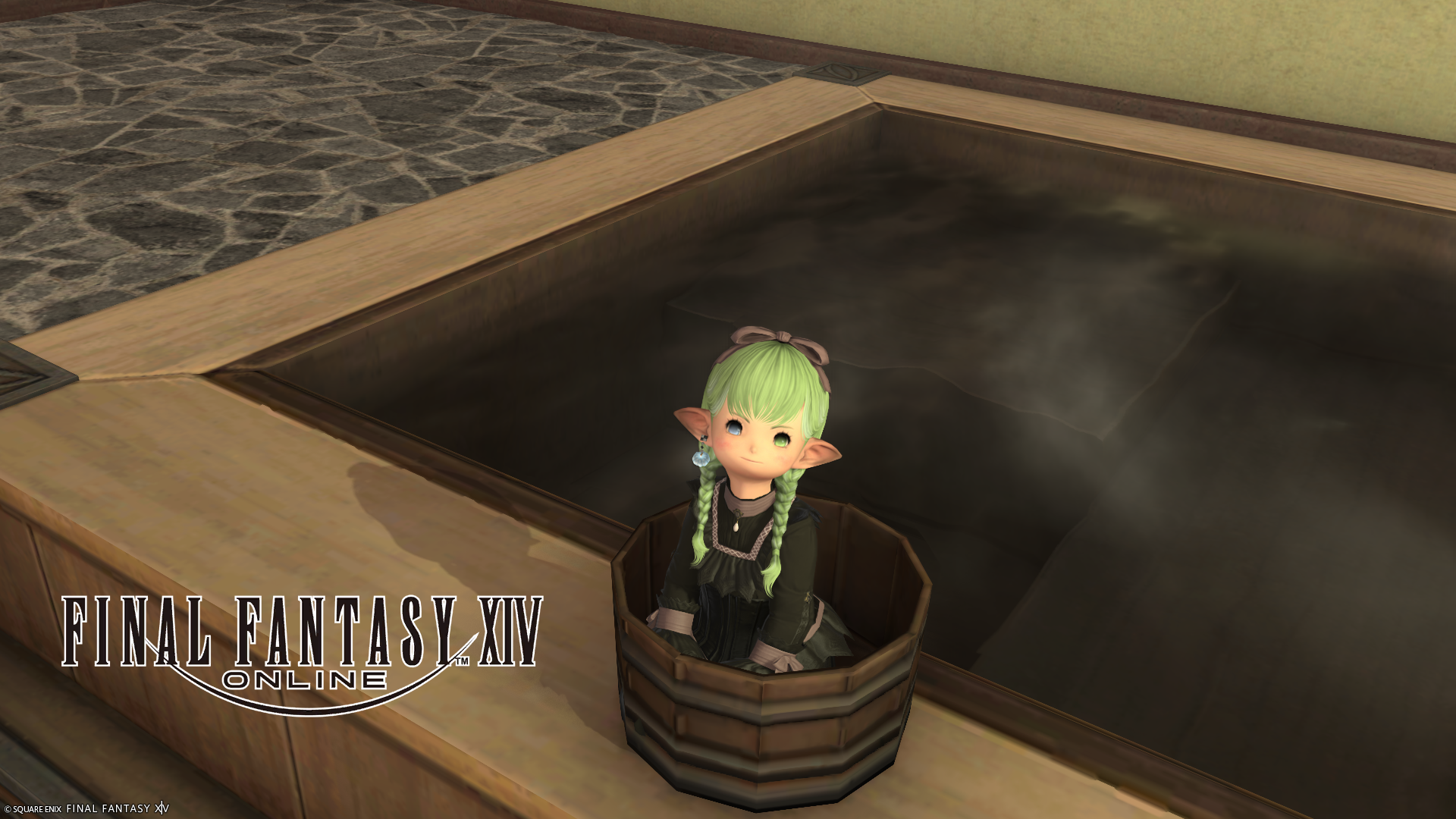 和室っぽい場所を作ってお風呂を作ってみたけど、ララフェルにはたらいで十分そうですね!お風呂。