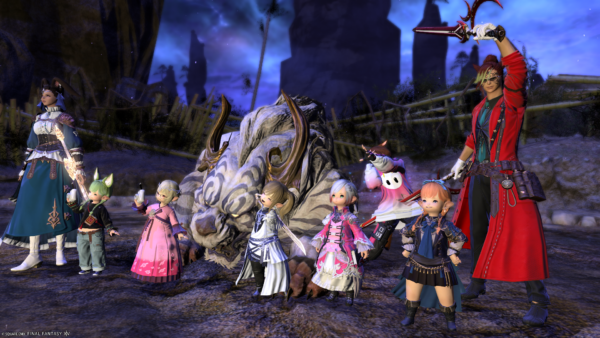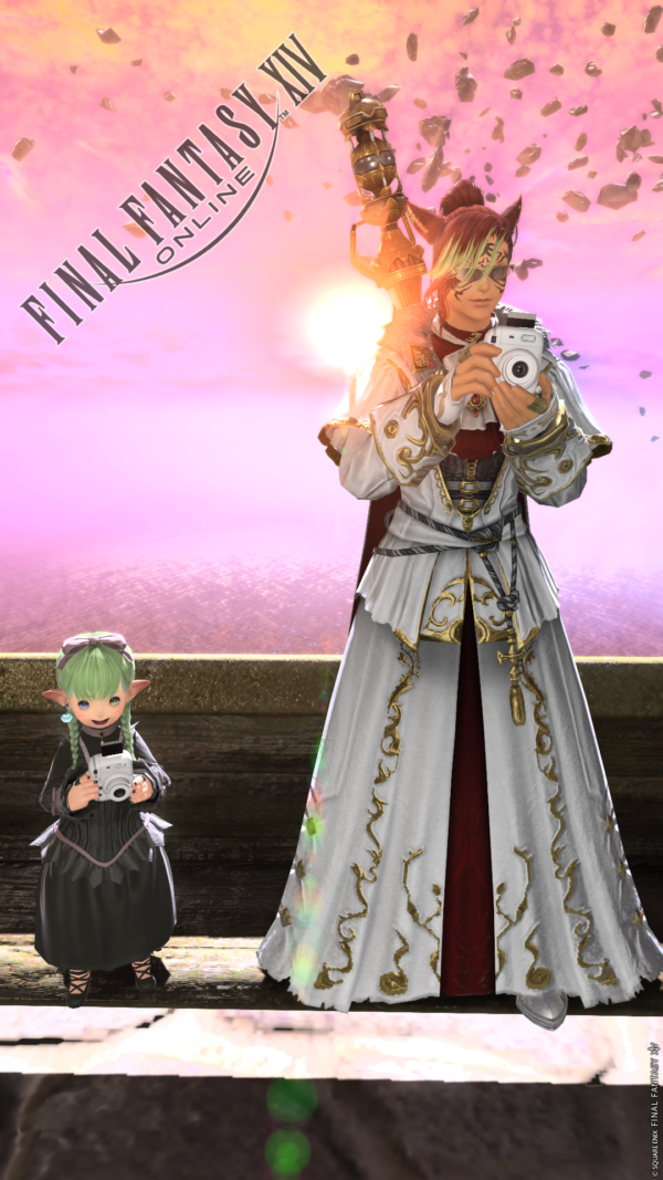 記念撮影した後よく見たら、一番右の赤い服のミコッテさんの持ってる剣がお隣のミコッテさんにぷっすりざっくり刺さってる!!そして痛そうなポーズがなんともぴったり……?