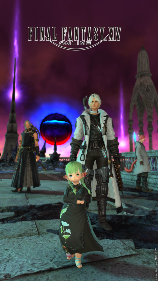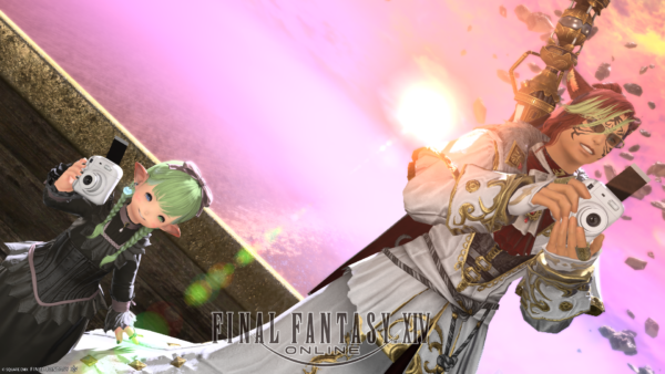 これもダッシュでサンクレッドさんの前に行って、素早くグループポーズに入ったら、エモートの再生を停止して撮った1枚。