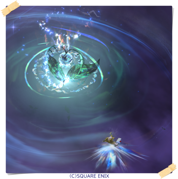 幻白虎戦、途中で落下するフェーズがあるのだけど、ご一緒する白魔道士さんがいつも落下前に白魔道士の「リタージー・オブ・ベル」というアビリティを使ってくださるのですが、それがきれいなのでパシャパシャ撮影しております。