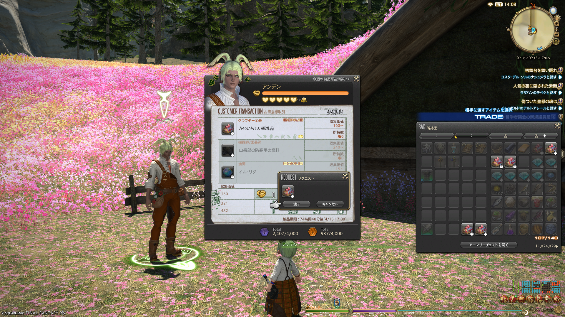 今週のお得意様取引、アンデンさんにはクラフターで納品。新しい食事を補充しておこうかな~って思って、スクリップがちょっと欲しかったのでした。