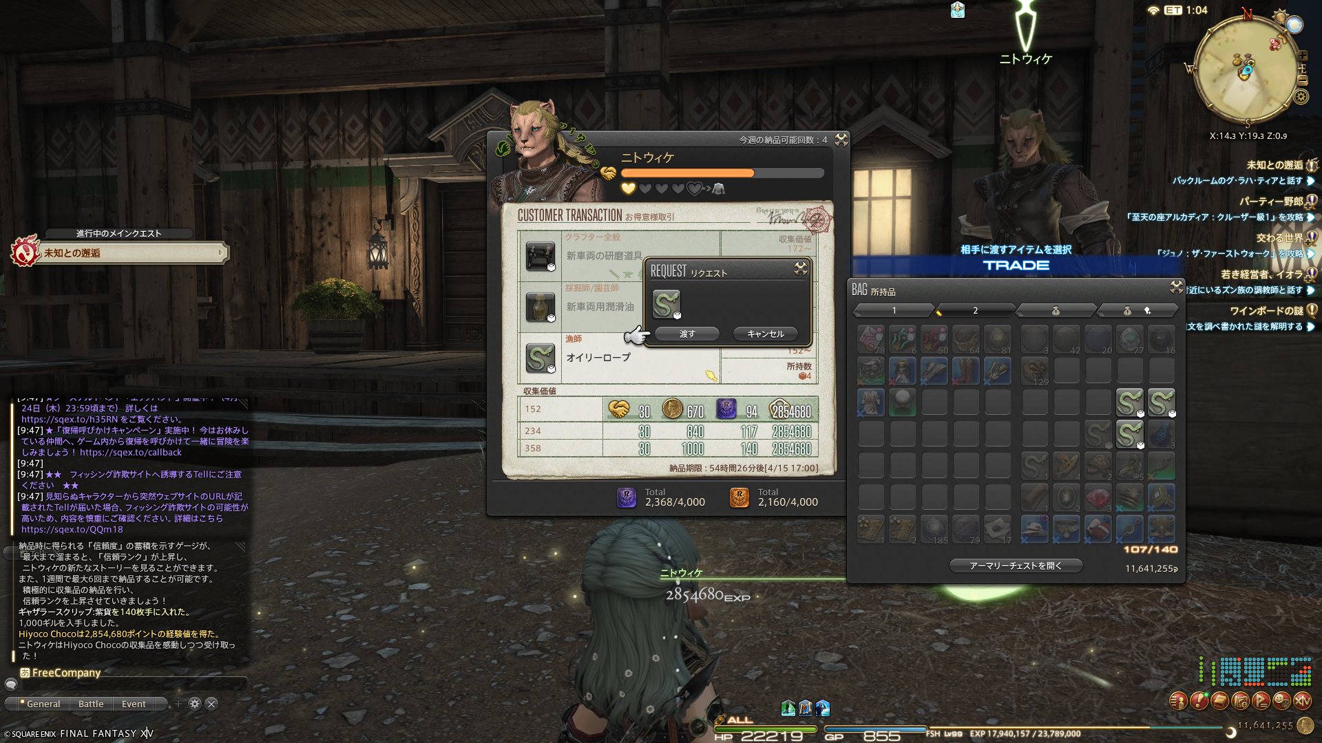 スクリーンショットは撮ってなかったけど、サブちゃんはペルペル族の友好部族クエストも開放しました。友好度を上げたいのでしばらくは友好部族クエストを頑張らなくっちゃ~。